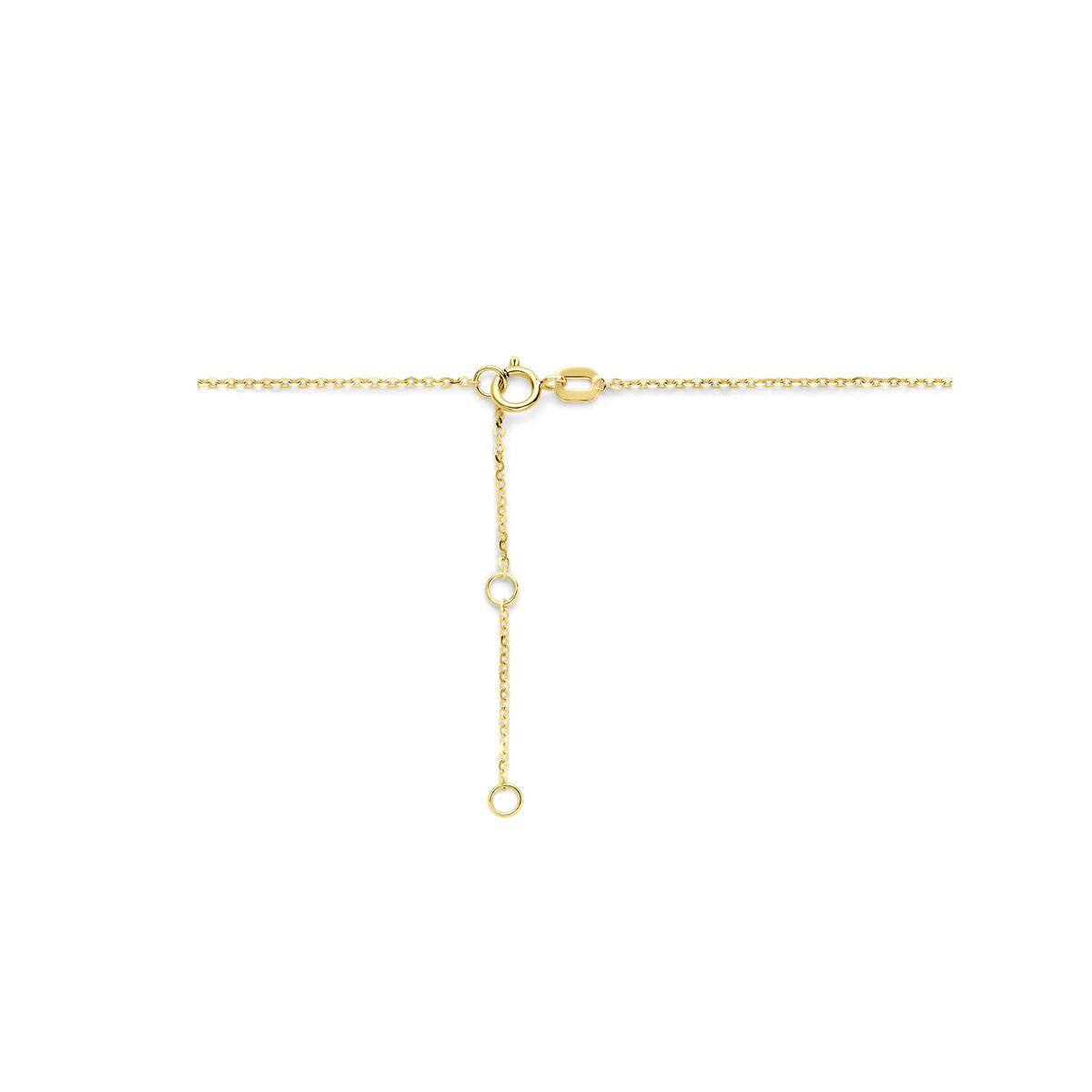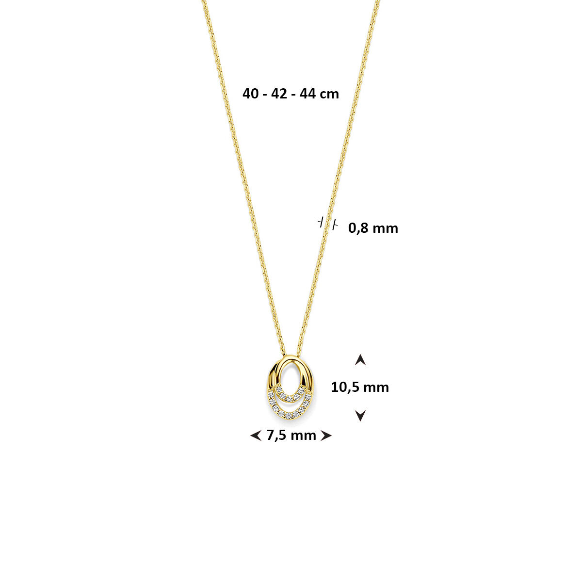 14k Geelgouden collier met ovale hanger uitgevoerd met zirkonia. Het collier heeft een draaglengte van 40-42-44cm.