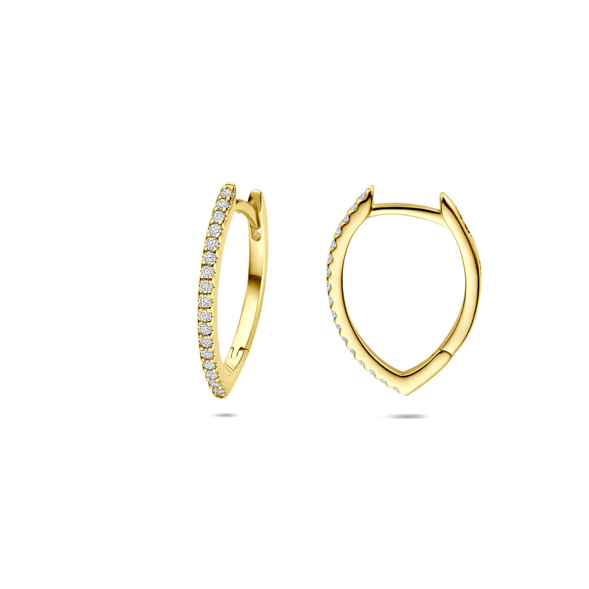 14k Geelgouden klapoorringen uitgevoerd met diamant. De klapoorringen hebben een afmeting van 16.5x1.5mm. Het totale diamantgewicht is 0.15ct.