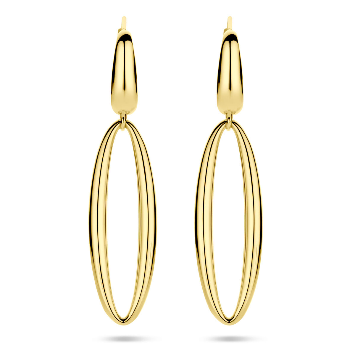 Collectie Milikan 14 Karaat Geelgouden ovale oorhangers 9.5x42mm