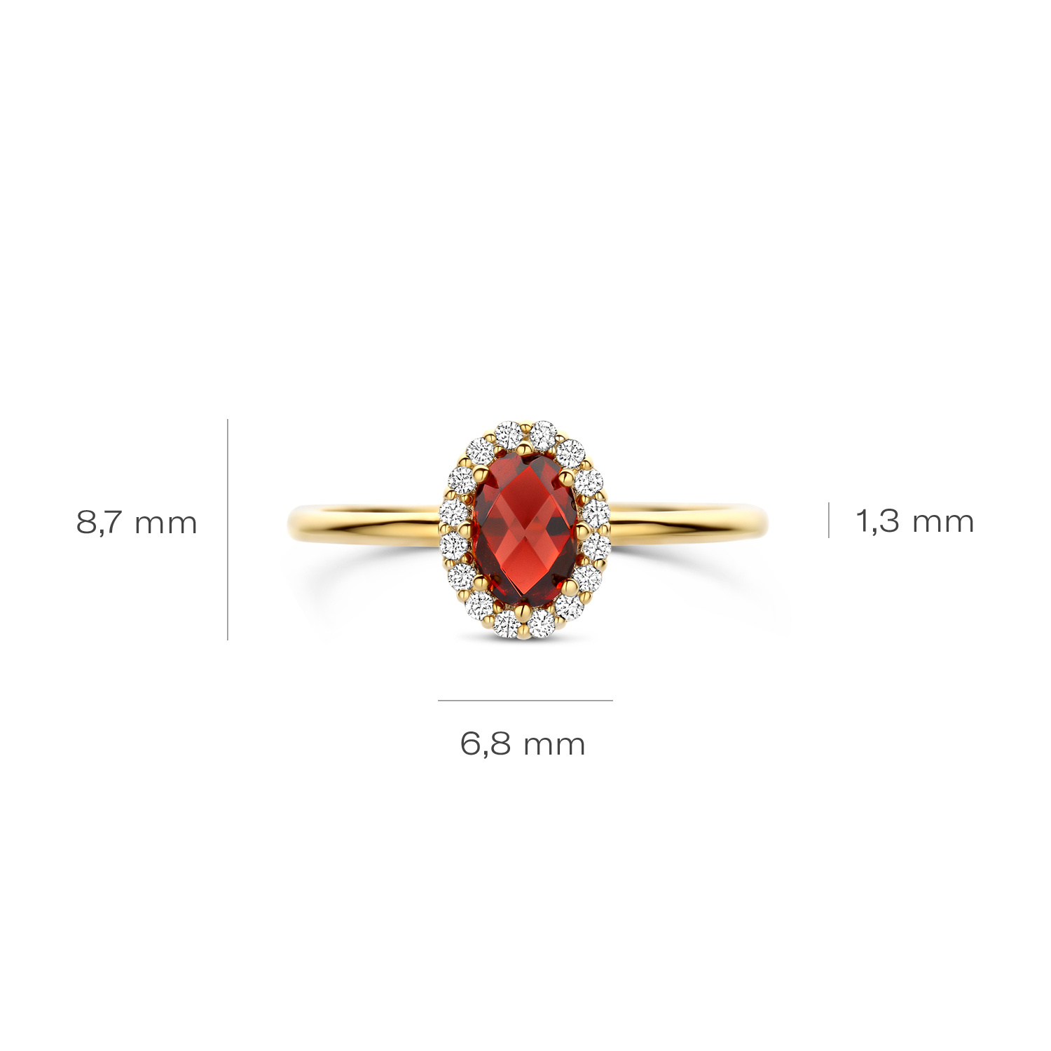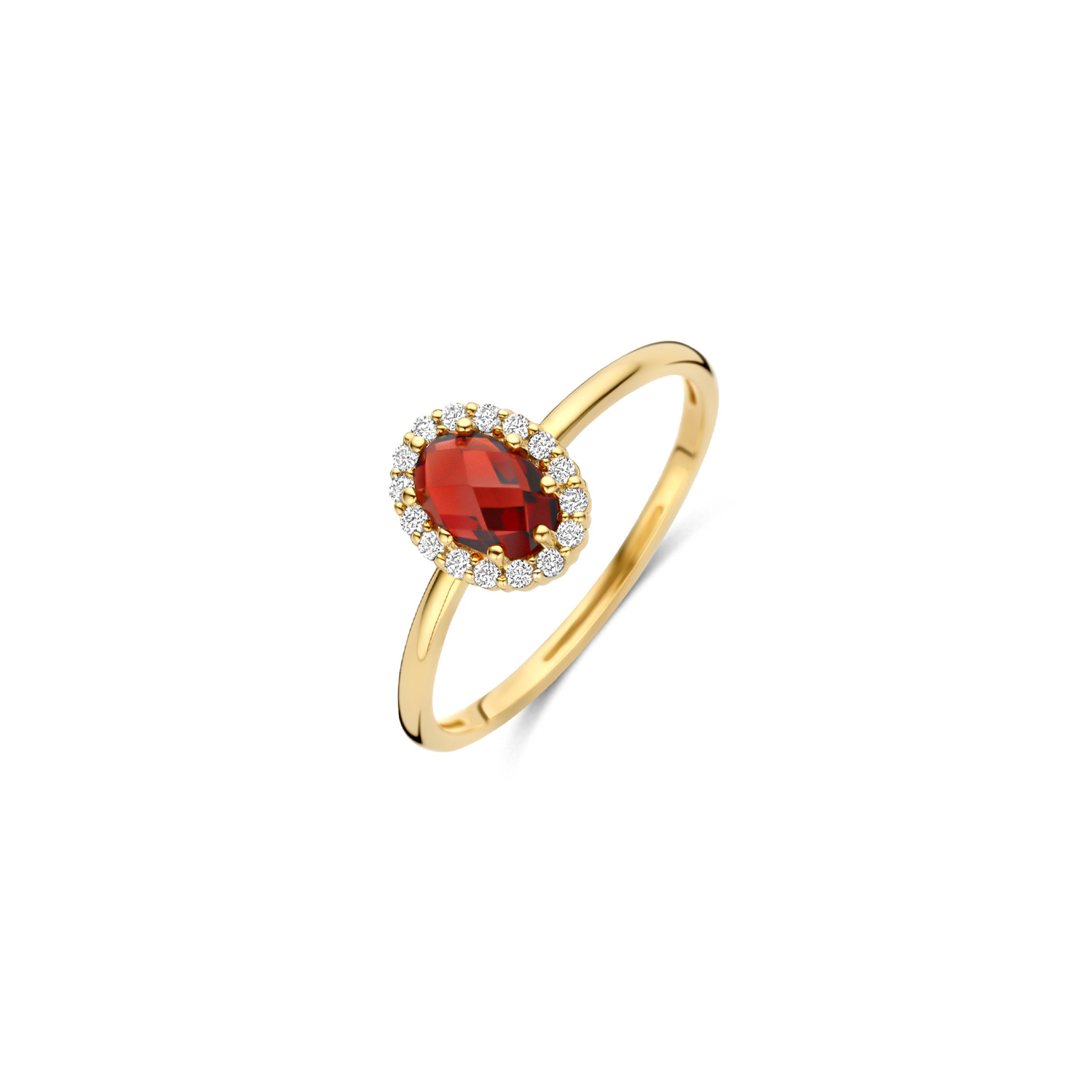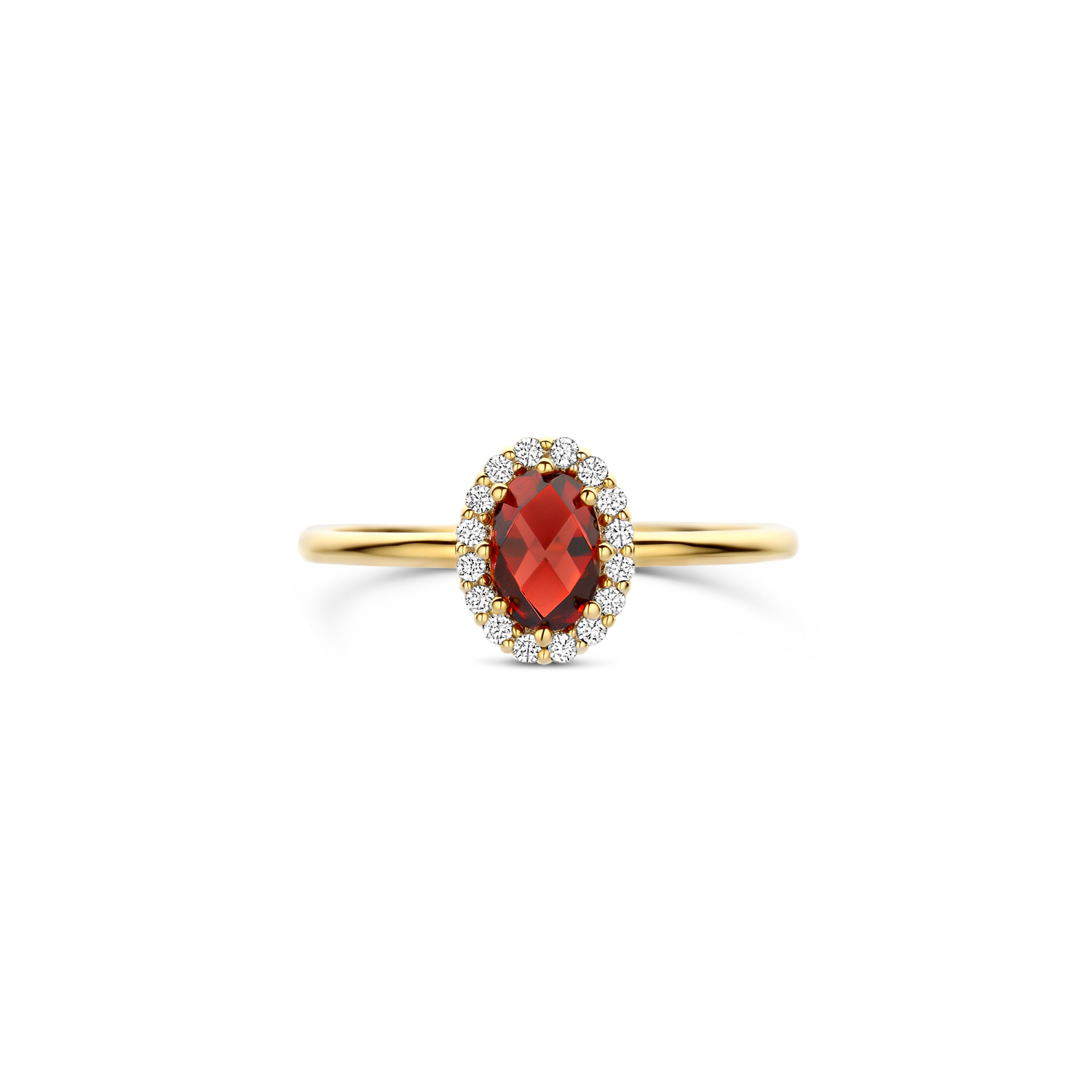 BLUSH 1271YGA 14krt geelgouden ring met rode steen rondom zirconia