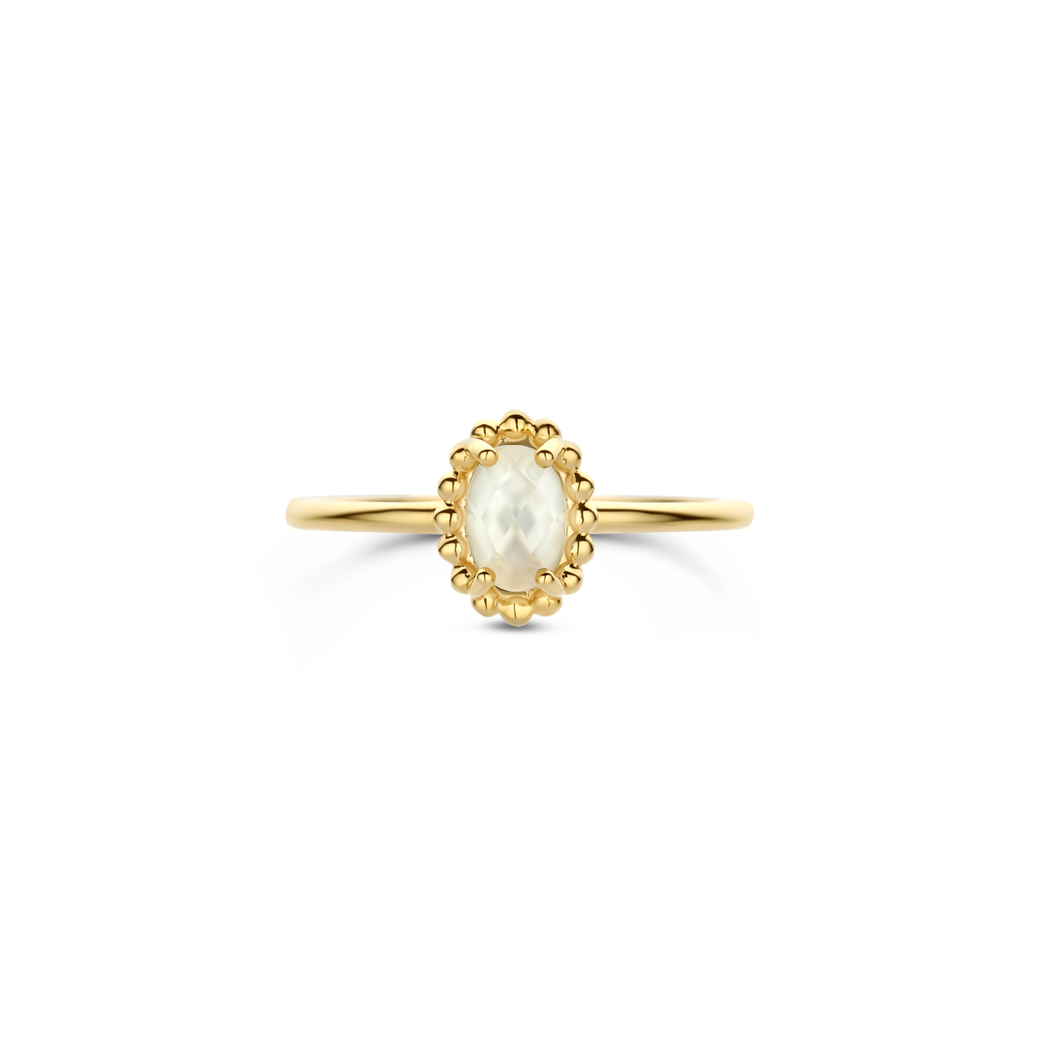 BLUSH 1272YMQ 14krt geelgouden ring met maansteen rondom met pareldraadrand