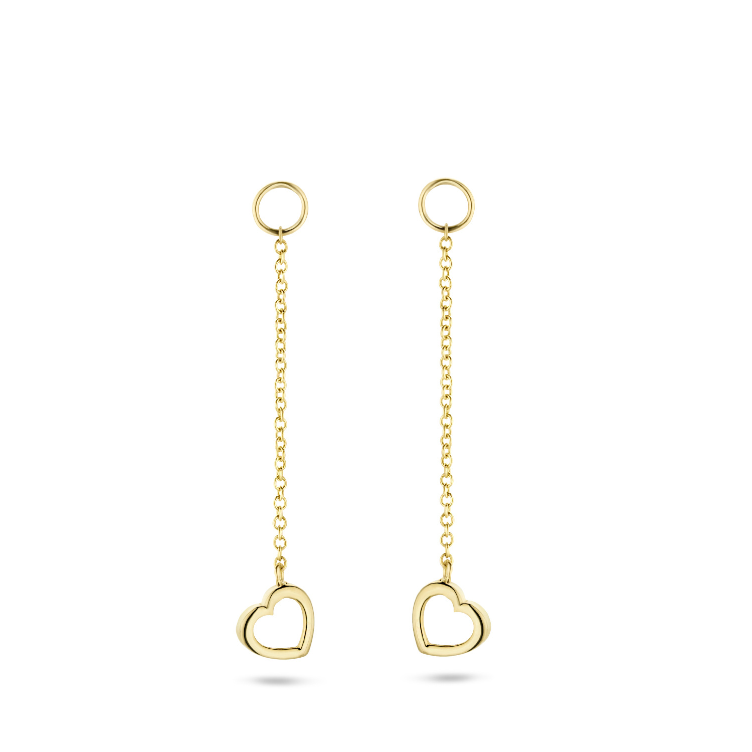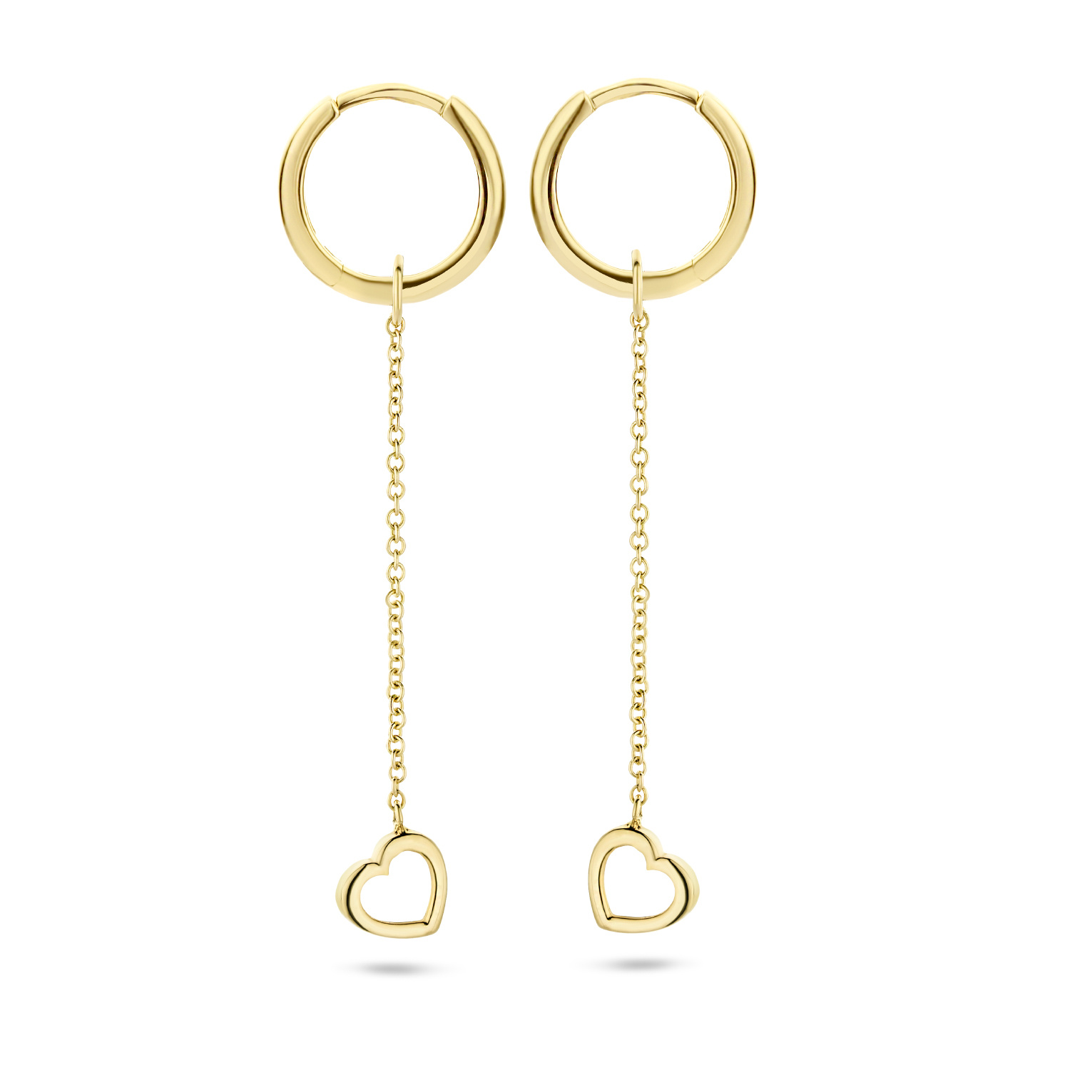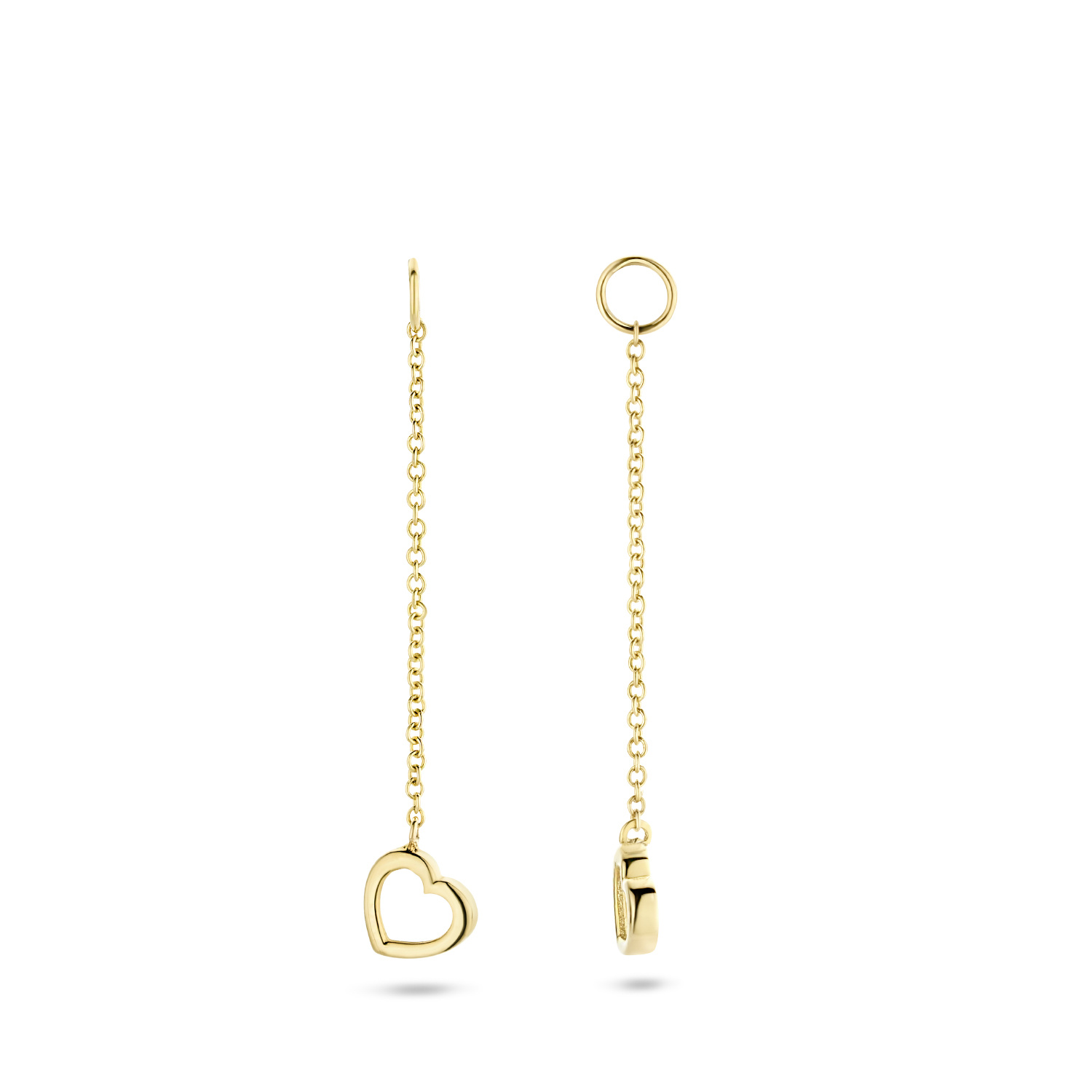 Deze 14k geelgouden oorbedels hebben een hanger in de vorm van een hartje. Een prachtig cadeau voor jezelf of een geliefde. Ze hebben een lengte van 2,8 cm en je schuift ze eenvoudig om een oorring. De bedels matchen mooi met andere oorsieraden uit onze collectie.