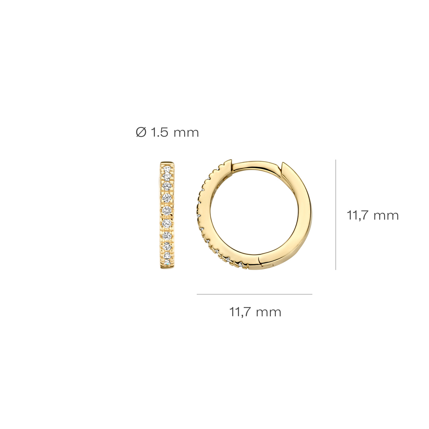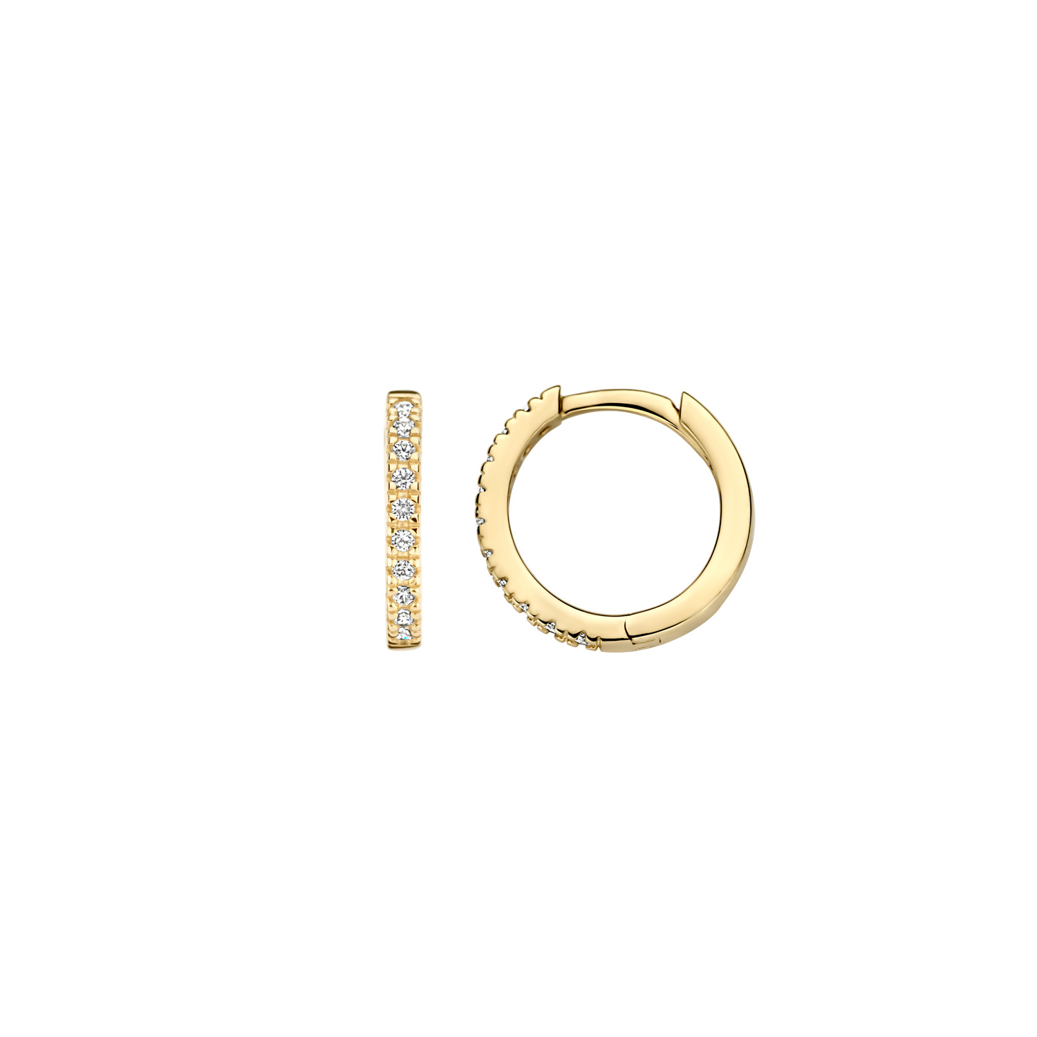 BLUSH 14krt geelgouden klapcreolen rond 12 mm, 1.5 mm breed met zirconia's 7307YZI.