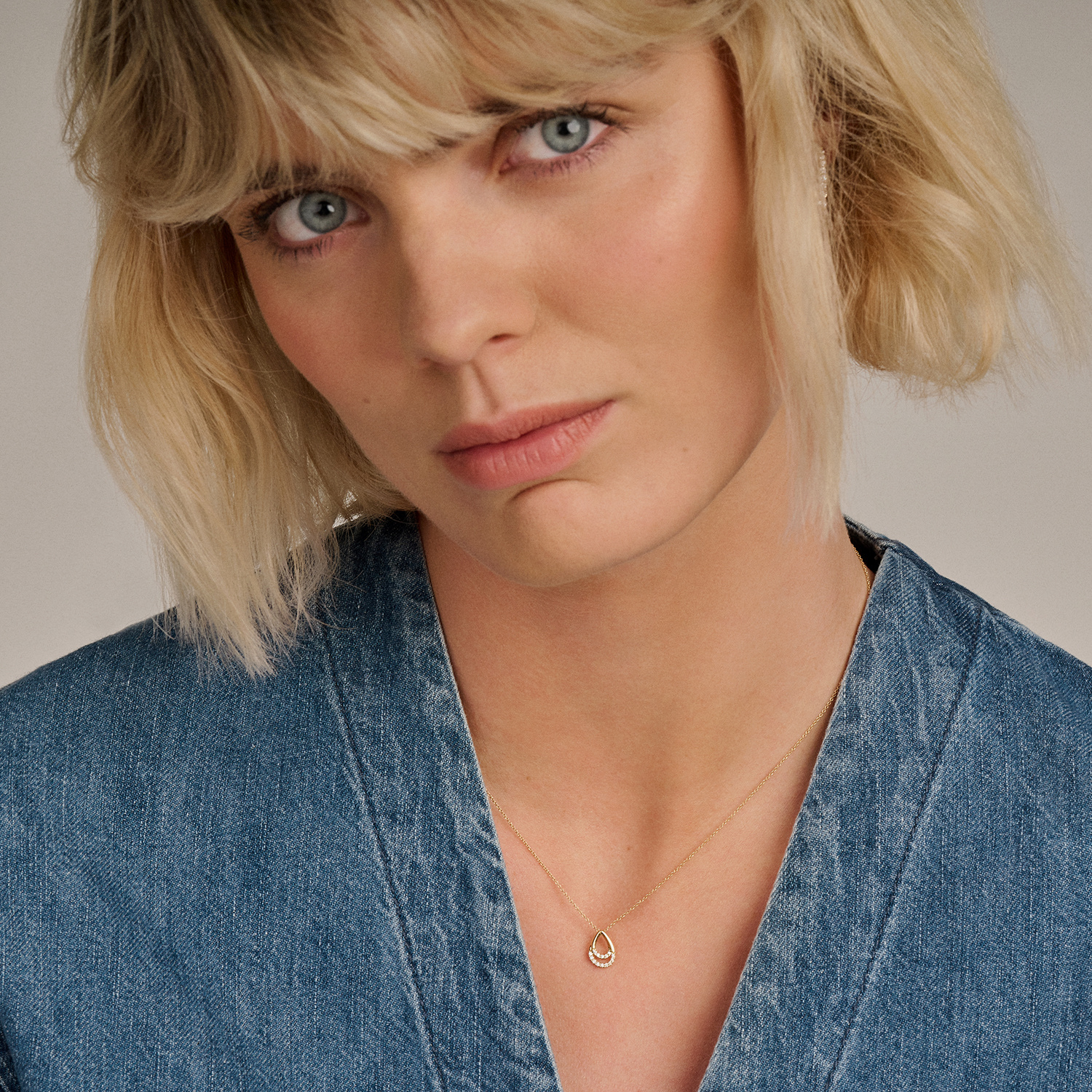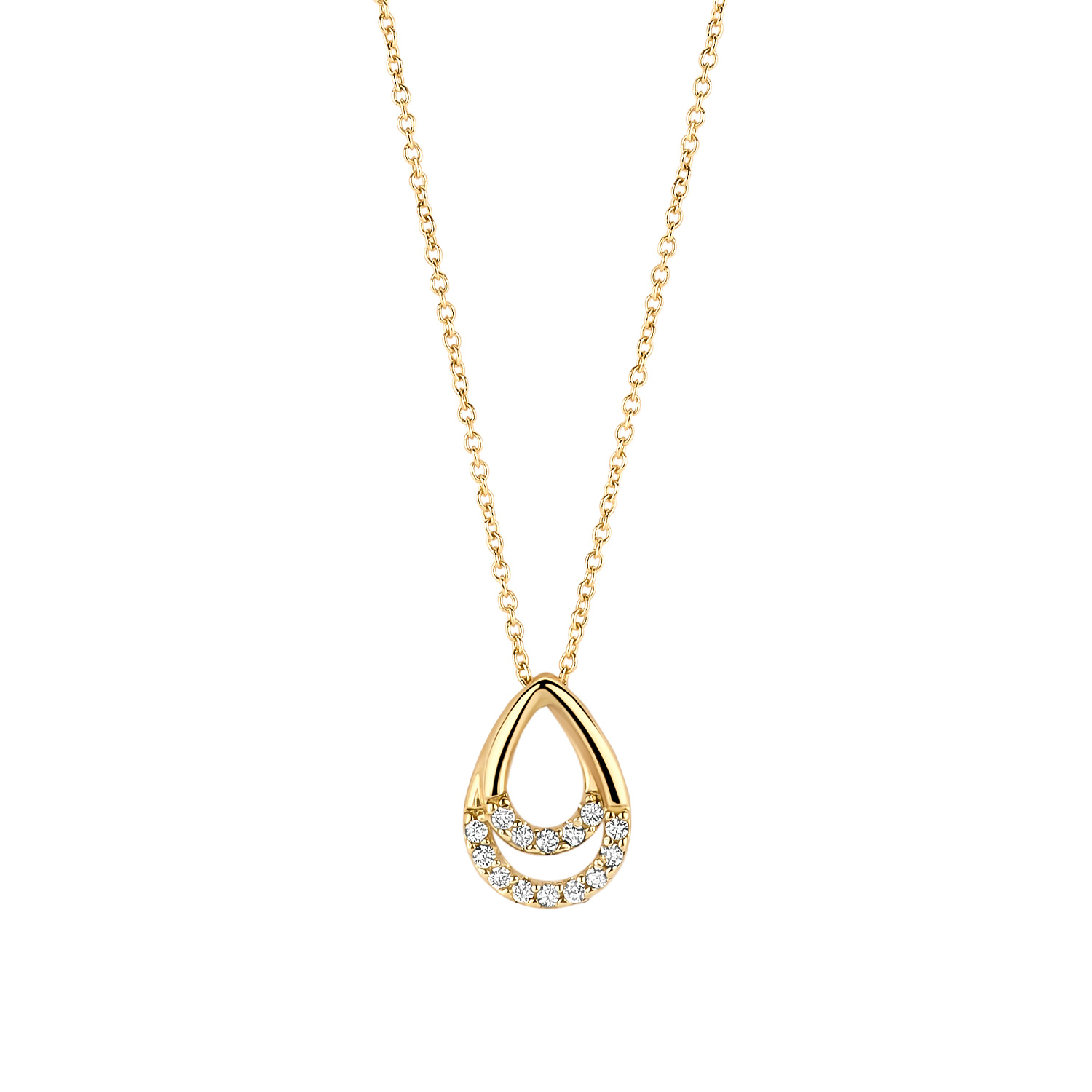 BLUSH 3195YZI 14krt geelgouden collier met open druppelvormig hangertje en zirconia's
