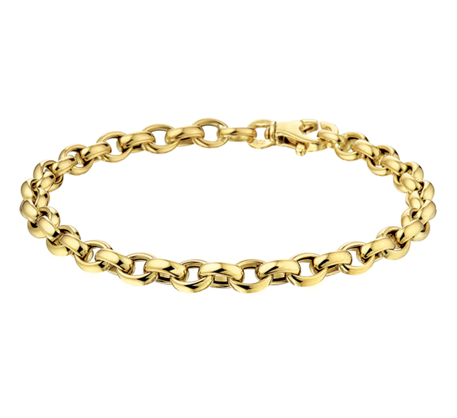 Collectie Milikan 14 karaat geelgouden ovale Jasseron armband 5mm breed, 19cm lang