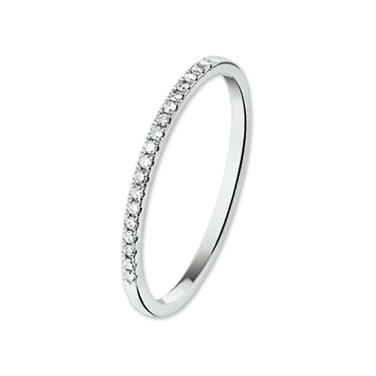 14k Witgouden ring uitgevoerd met diamant. De ring heeft een breedte van 1.2mm. Het totale diamantgewicht is 0.09ct.