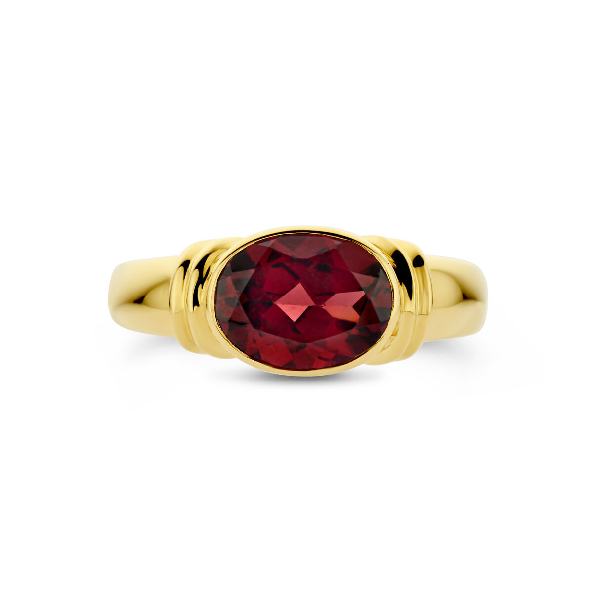 Collectie Milikan 14 krt geelgouden ring met granaat 8x10mm, maat 17 3/4