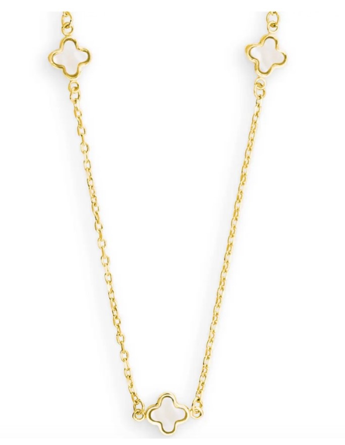 Collectie Milikan 14krt geelgouden collier met kleine klavervormige elementen, bezet met parelmoer, 5x, 45 cm, 1057094