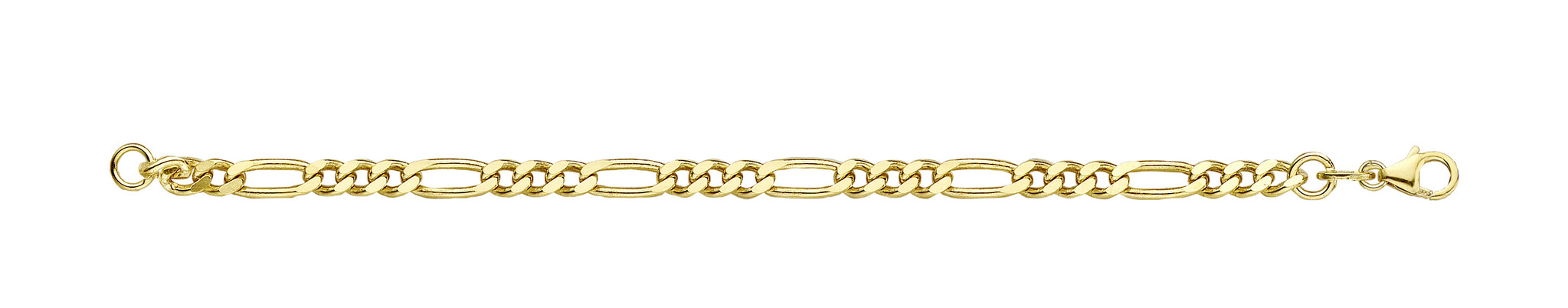 Fjory geelgouden armband 40-F0621 | 21 cm, 14 karaat geelgoud met zilveren kern, figaro schakel 6 mm breed.
