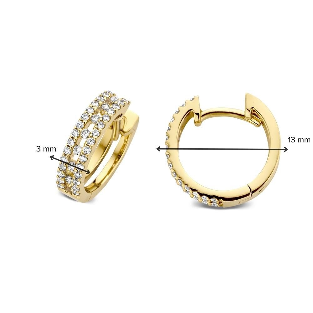 Huiscollectie 14krt geelgouden klapcreolen met diamant, 2-baans 13 mm met opening, tot. 0.28crt H/SI, 1058219