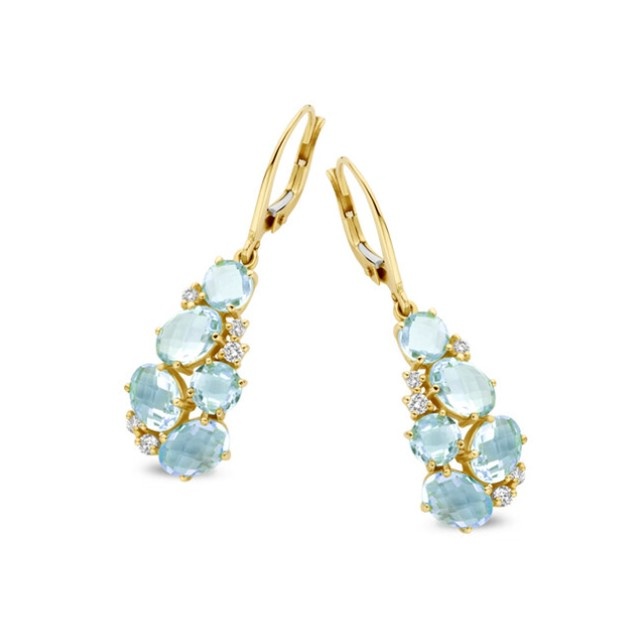 JARREL 4Y.6157.TOS.Diw 14krt geelgouden oorhangers Palazzo met 2x 5 blauwe topaas en 2x 5 diamant.