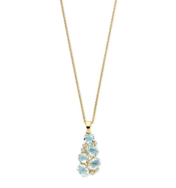JARREL 4Y.6163.TOS.Diw 14krt geelgouden collier Palazzo met 5x blauwe topaas en 5x diamant