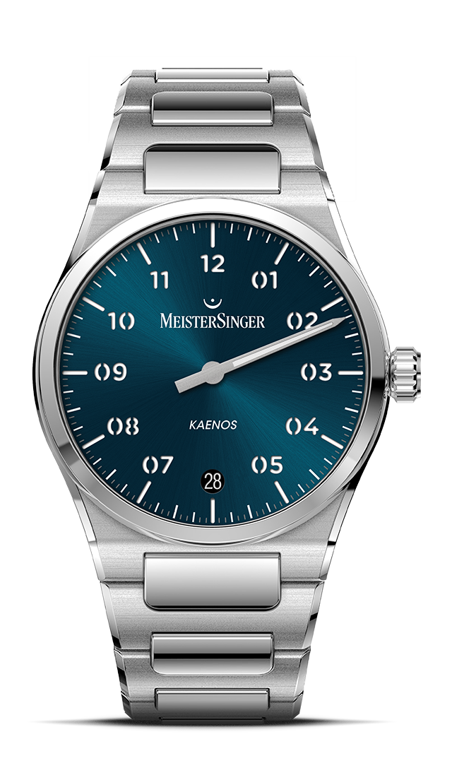 De Kaenos is vanaf nul ontwikkeld. De naam „Kaenos“ is afgeleid van het Griekse woord „kainos“, wat „nieuw“ of „vers“ betekent, en verwijst naar het Cenozoïcum – een tijdperk van vernieuwing in de geschiedenis van de aarde. Een meer dan toepasselijke naam, aangezien de Kaenos bij MeisterSinger een fris nieuw begin markeert en staat voor opwindende verdere ontwikkeling. De nieuwe productfamilie is verdeeld in twee lijnen: De Kaenos met een grote datum op de 6-uurspositie en de Kaenos Open Date met een open datumschijf waarop de datum onder de 12-uurspositie kan worden afgelezen. De Kaenos ontving de prestigieuze iF Design Award 2025 voor zijn uitmuntende ontwerp.
