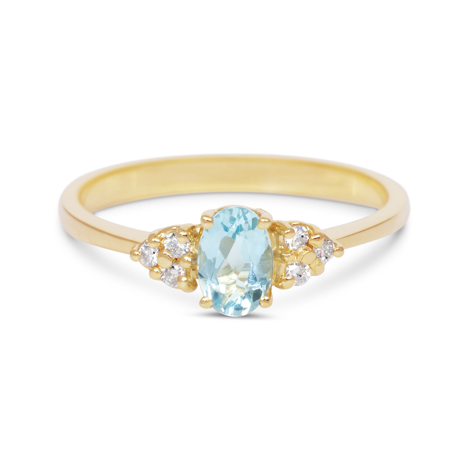 Miss Spring ring Hannah MSR584BTGG op maat 54, gemaakt van 14krt geelgoud met ovale blauwe topaas en 2x3 briljant, totaal 0,09crt pikee/wesselton.