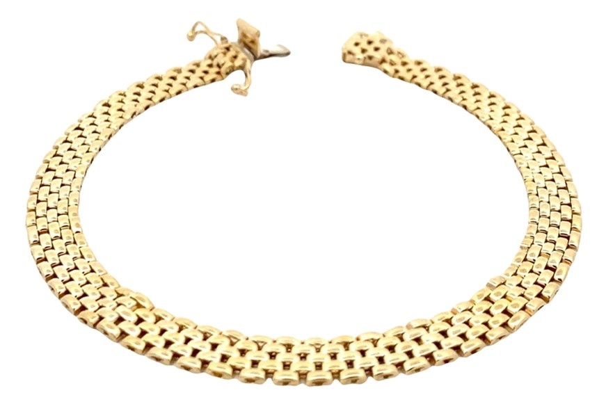 MONZARIO 1344A GEEL 14krt geelgouden schakelarmband Panthere, 5-rij, 19 cm.