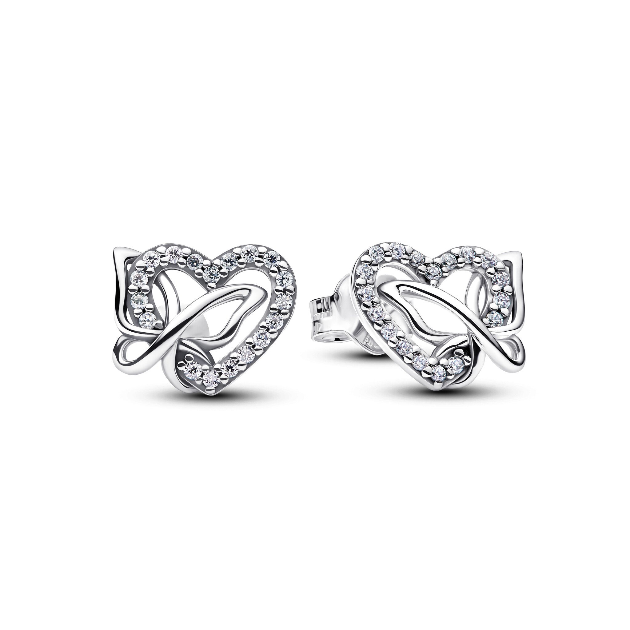 PANDORA 294476C01 Heart and butterfly sterling silver stud earrings with zirconia