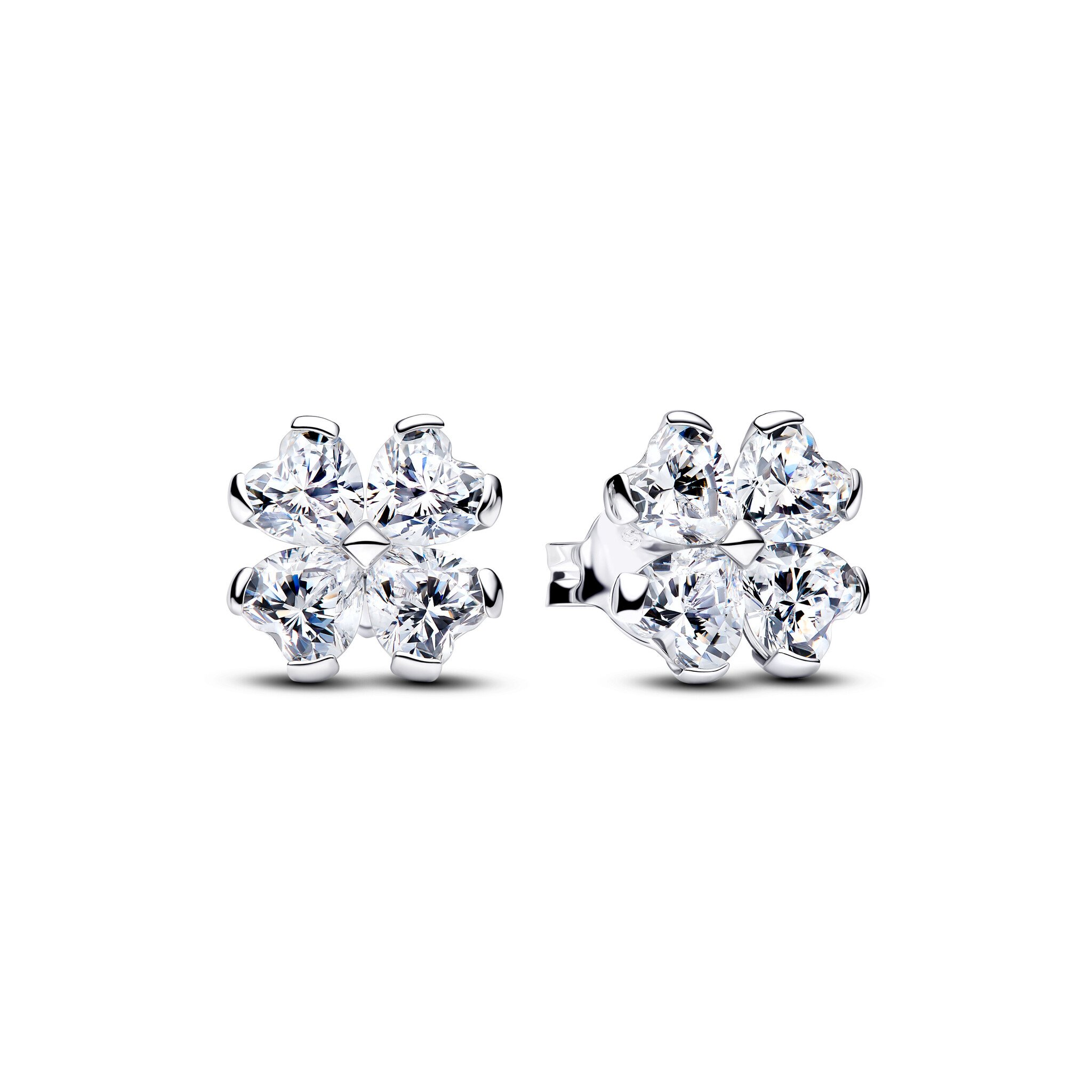 PANDORA 294500C01 Clover sterling silver stud earrings with zirconia