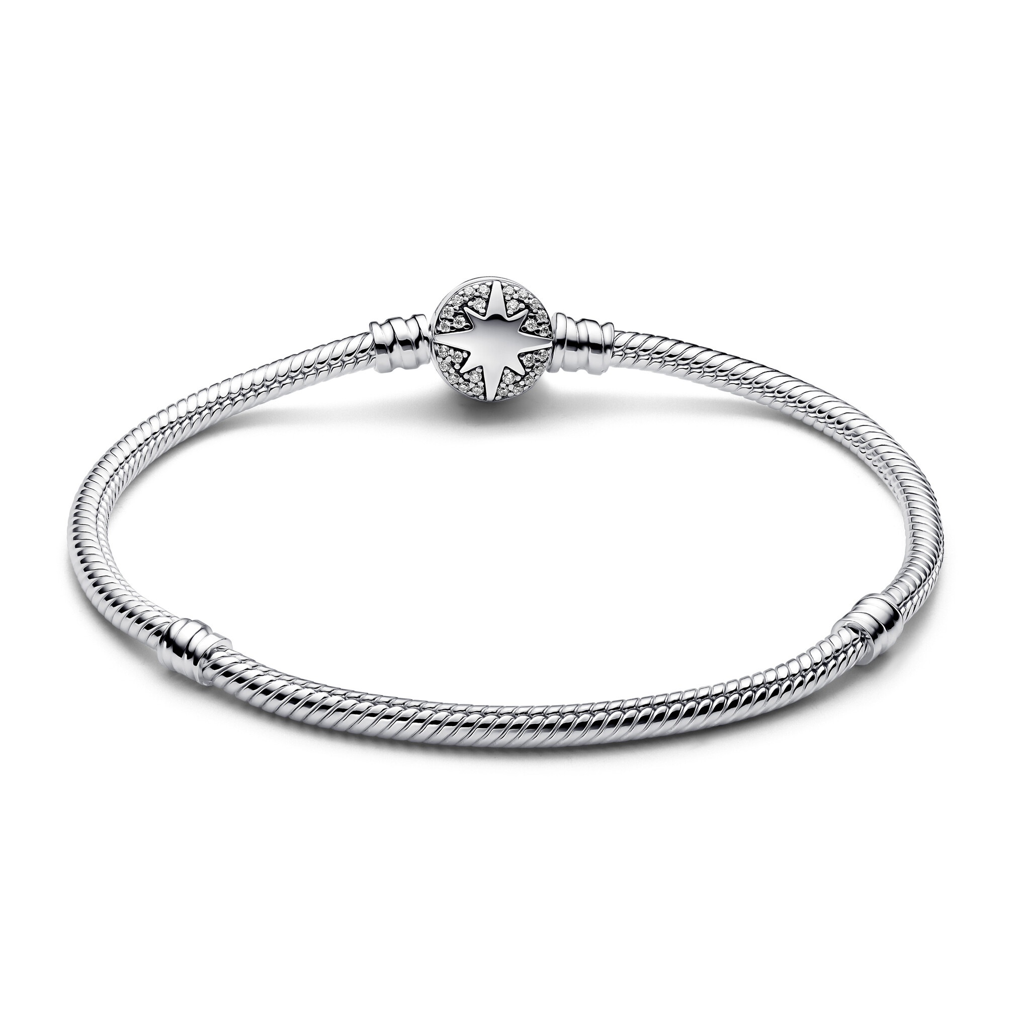 PANDORA 593584C01 Snake chain sterling silver bracelet with north star clasp and zirconia