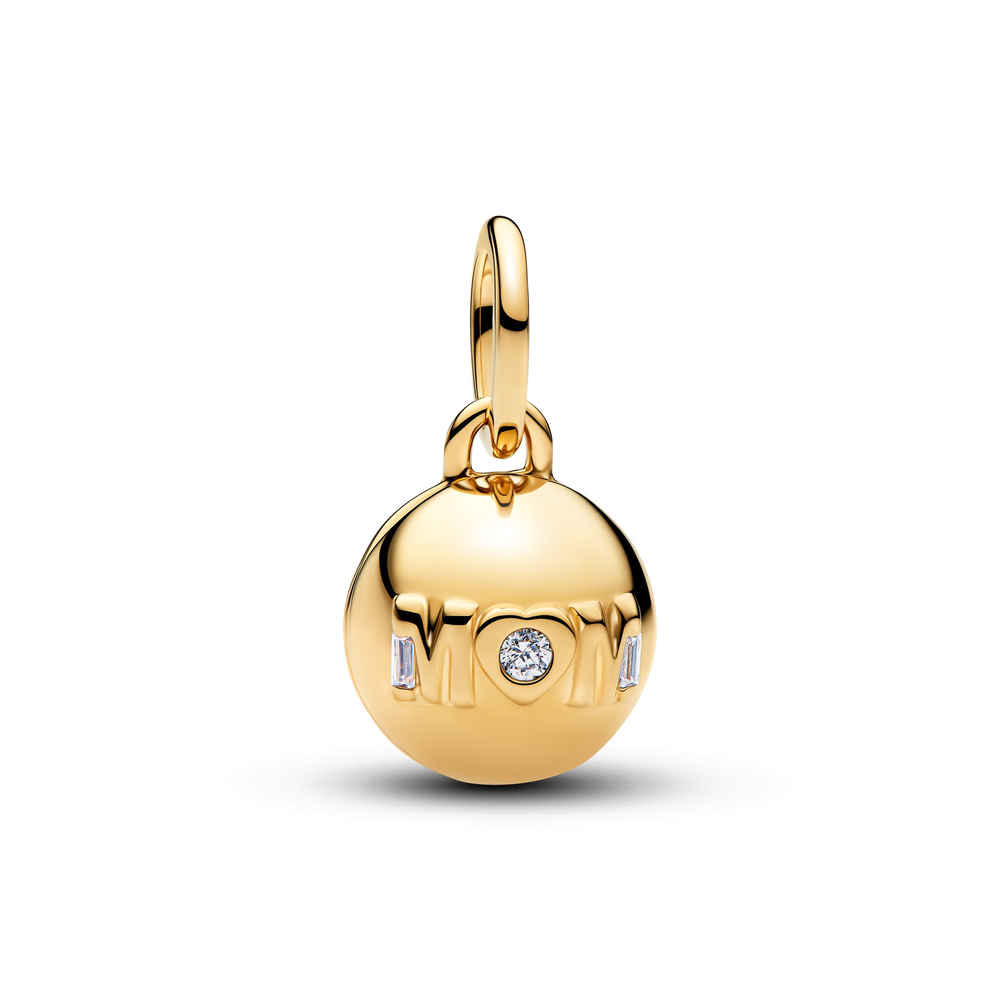 PANDORA SHINE 764457C01 Openable mom ball 14k gold-plated dangle with zirconia and black enamel