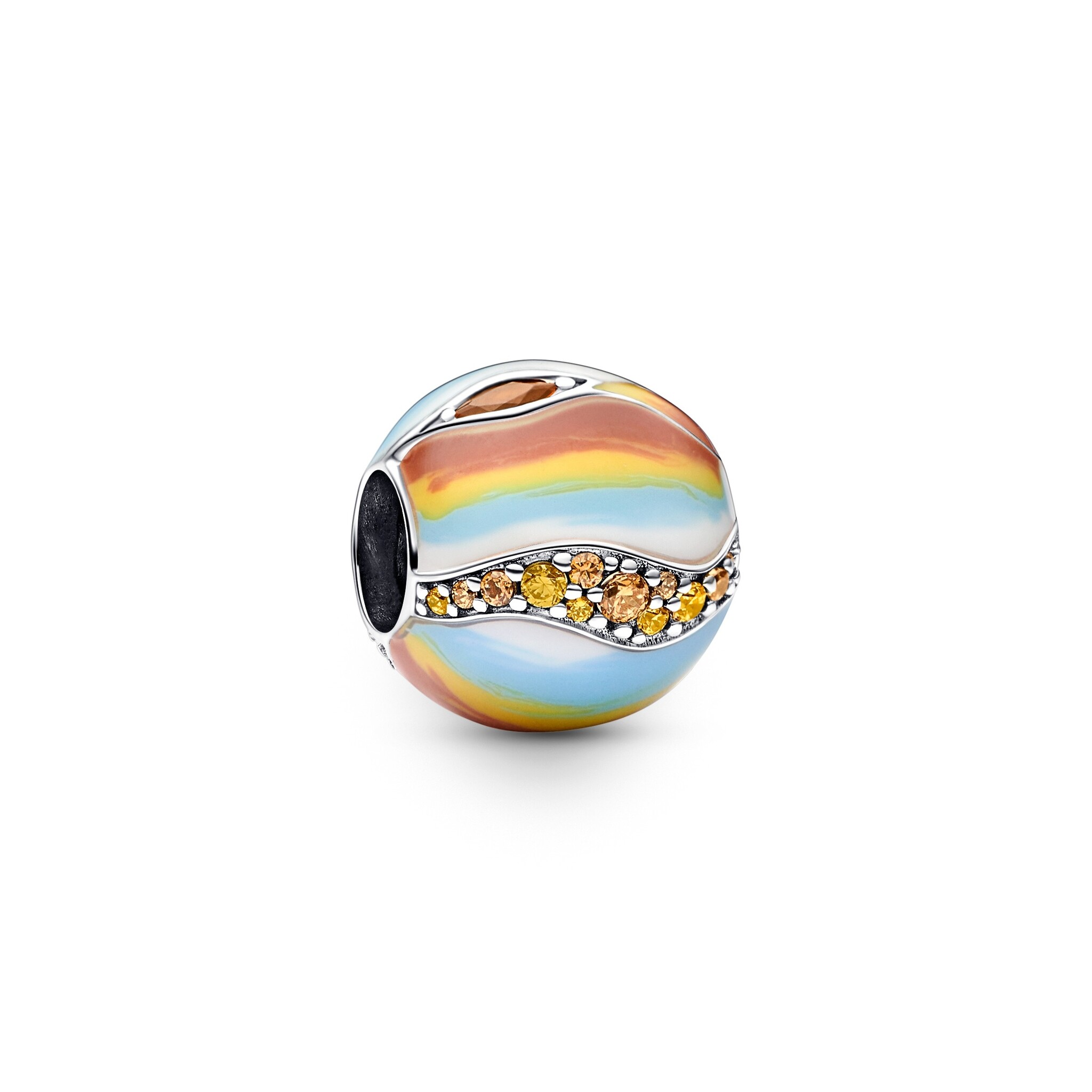 PANDORA 792432C01 Jupiter sterling silver charm with fancy golden coloured crystal and yellow, brown and white enamel