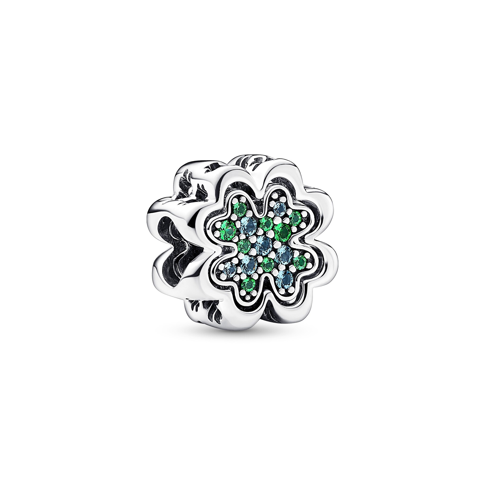 PANDORA Clover sterling silver splittable charm with icy green and royal green crystal 792752C01
