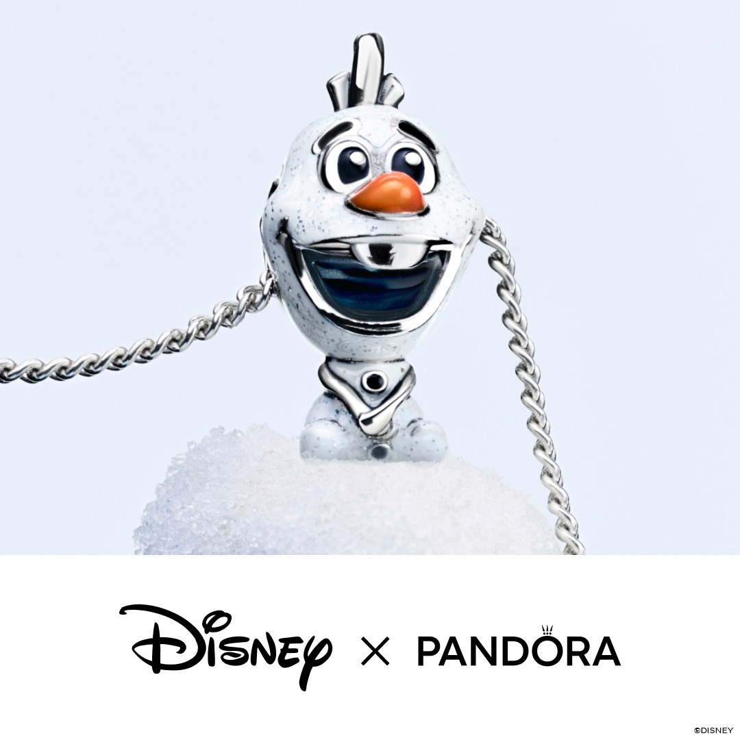 PANDORA DISNEY 793978C01 Olaf sterling silver charm with orange, black and glittery white enamel and blue UV resin