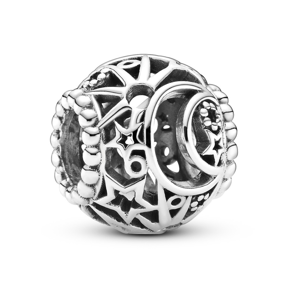 Draag een gids naar het heelal met de Openwork Sun, Stars & Moon Charm. Hij is hand-finished in sterlingzilver en dit zeer gedetailleerde stuk is viering van al het hemelse. Dit mystieke ontwerp wordt gedecoreerd met beaded randen rond de openingen van de bedel, uitgesneden maansikkel, zon en ster filigraanmotieven. Combineer dit stuk met je favoriete bedels met ruimtethema voor een Pandora Moments-armband die zowel spiritueel als speciaal is.