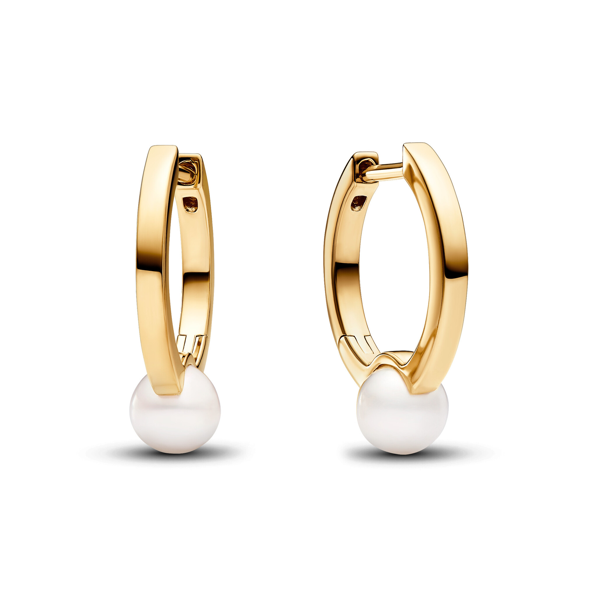 PANDORA SHINE 263170C01 14k Gold-plated earrings with white treated freshwater cultured pearl