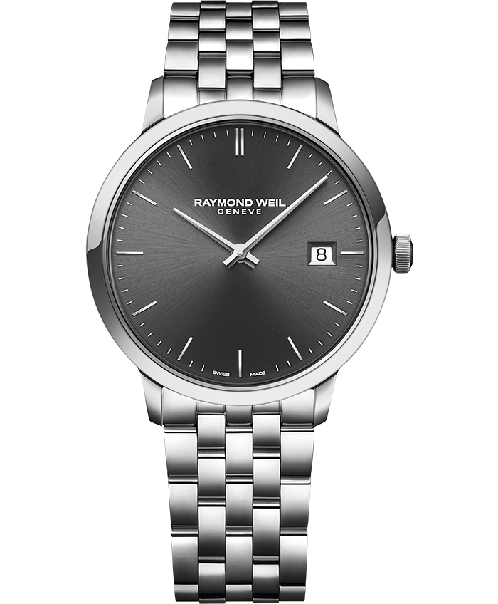 Raymond Weil Toccata 5485-ST-60001, heren, staal/staal, staal grijze wijzerplaat, datum/3, saffier glas, 5ATM.