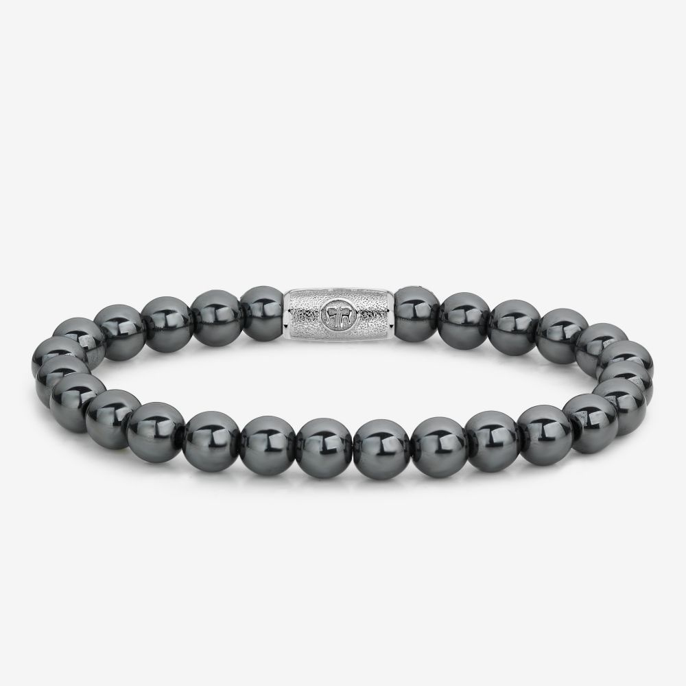 Edelstenen bead armband, handgemaakt van 8mm grijze Hematiet stenen met een speciaal DANNY VERA sluiting. Het Rebel & Rose sieraad is makkelijk te combineren met andere zilveren, leren of kralenarmbanden.