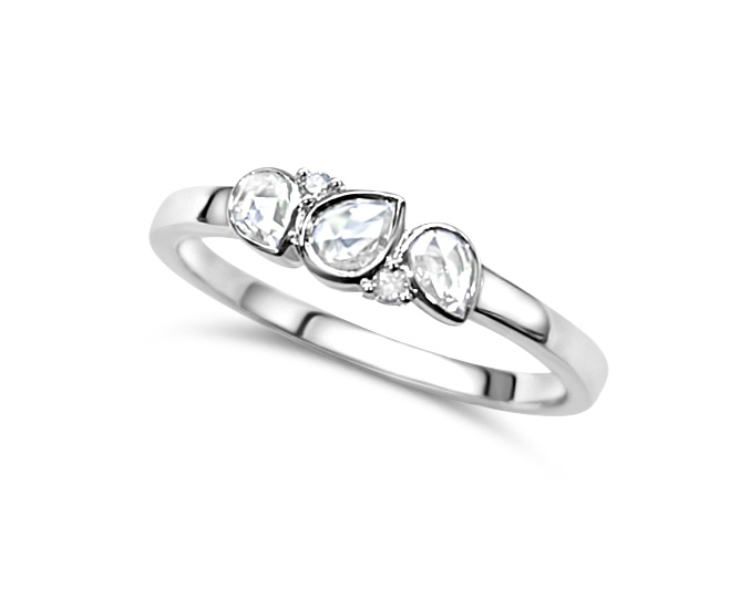 ROOS1835 18krt witgouden ring 163R26W18 met totaal 0.26ct roosgeslepen diamant (3x) en 2x briljant geslepen diamantjes (RS163R26).