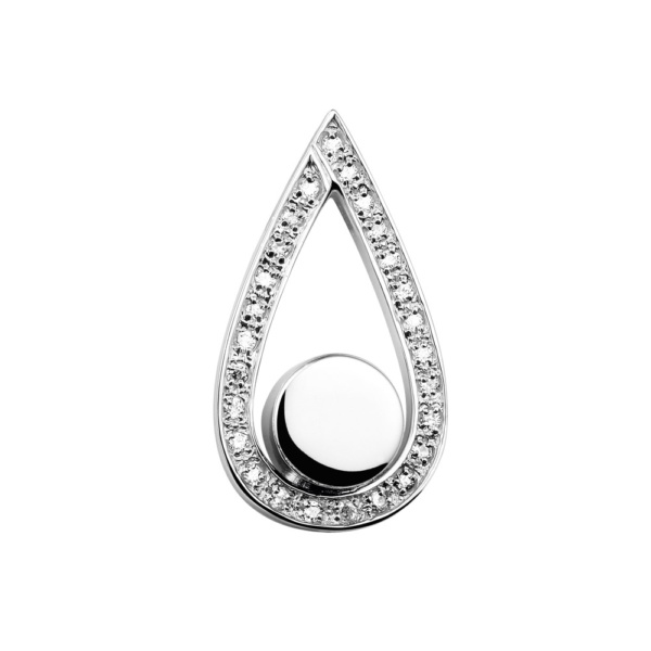 Zilveren druppel hanger met zirkonia’s. Door aan de achterkant de schroef te verwijderen kunt u het sieraad vullen met een trechtertje.