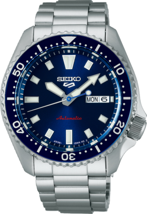 Seiko 5 Sports Horloge SRPL83K1 / 42.5mm, staal/staal automatisch uurwerk, blauwe wijzerplaat, dag/datum, hardlex glas, 10ATM waterbestendig.
