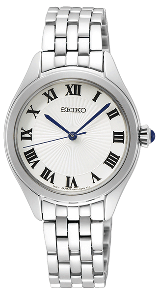 SEIKO Dames SUR327P1, staal/staal, witte wijzerplaat, rom. index, 5 ATM.