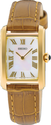 Seiko SWR100P1 vierkanthorloge / 22mm, staal double/leer bruin, quartz uurwerk, wit parelmoer wijzerplaat, 5ATM waterbestendig