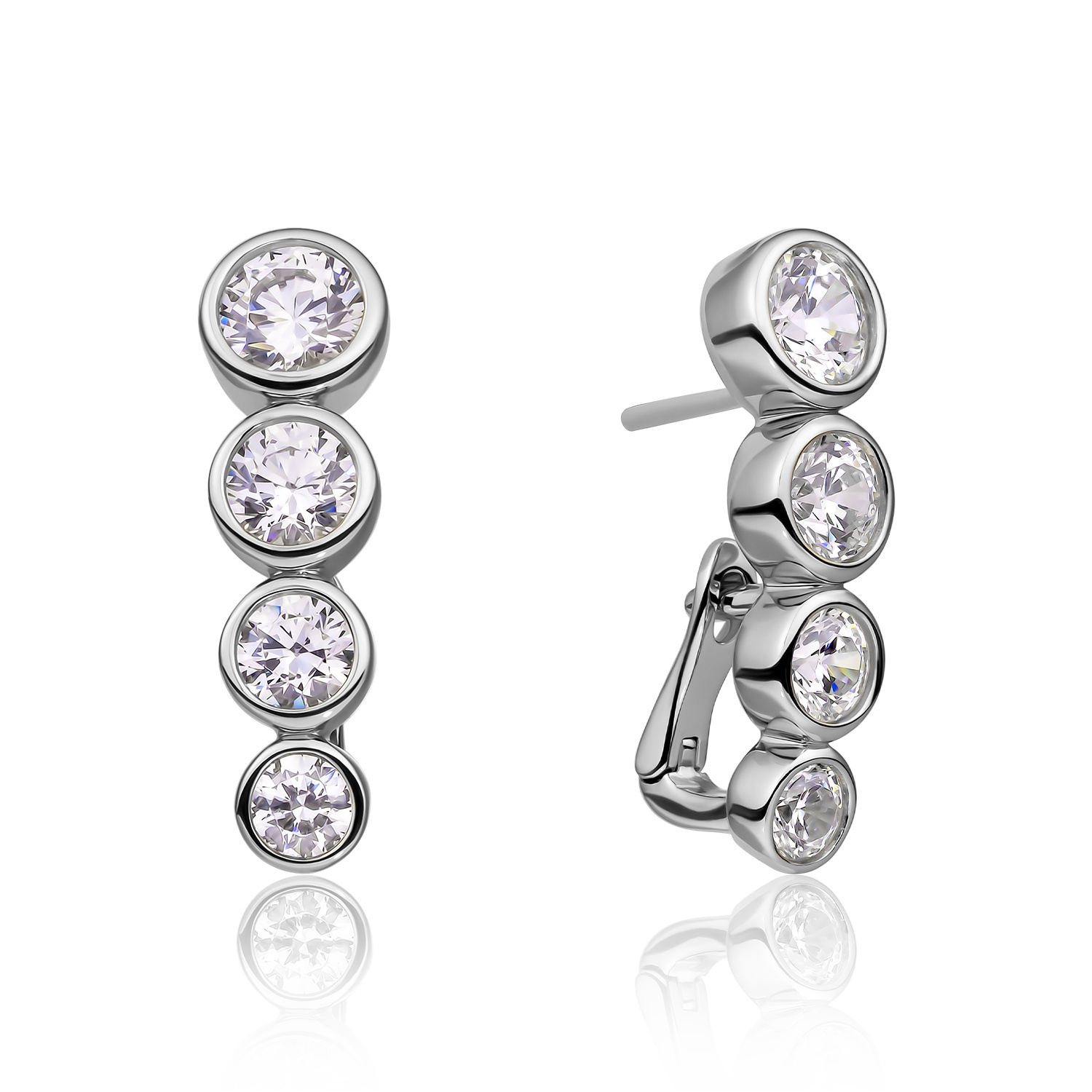 Sparkling Jewels EAS36 oorknoppen Tube Push Back Earrings Silver - CZ