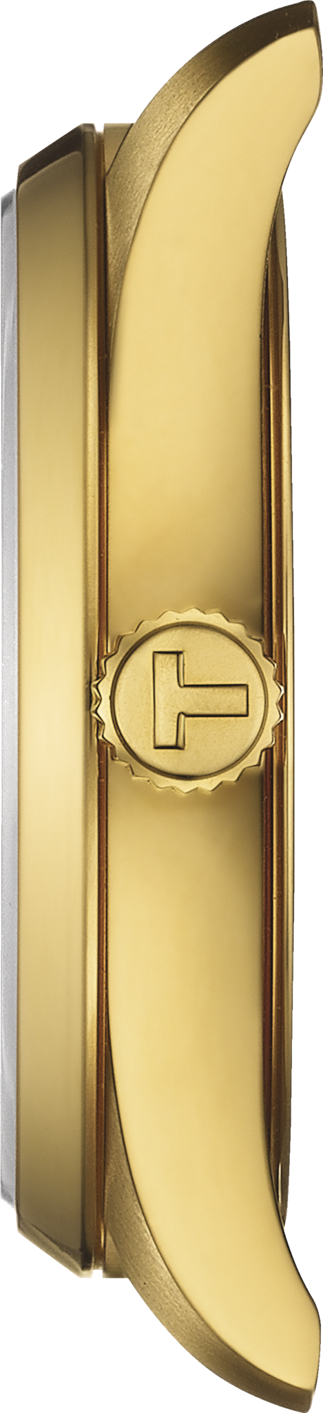 TISSOT PR 100 T150.210.33.021.00 | 34mm, staal/staal double, quartz, goudkleur wijzerplaat, saffierglas, datum, 10ATM.