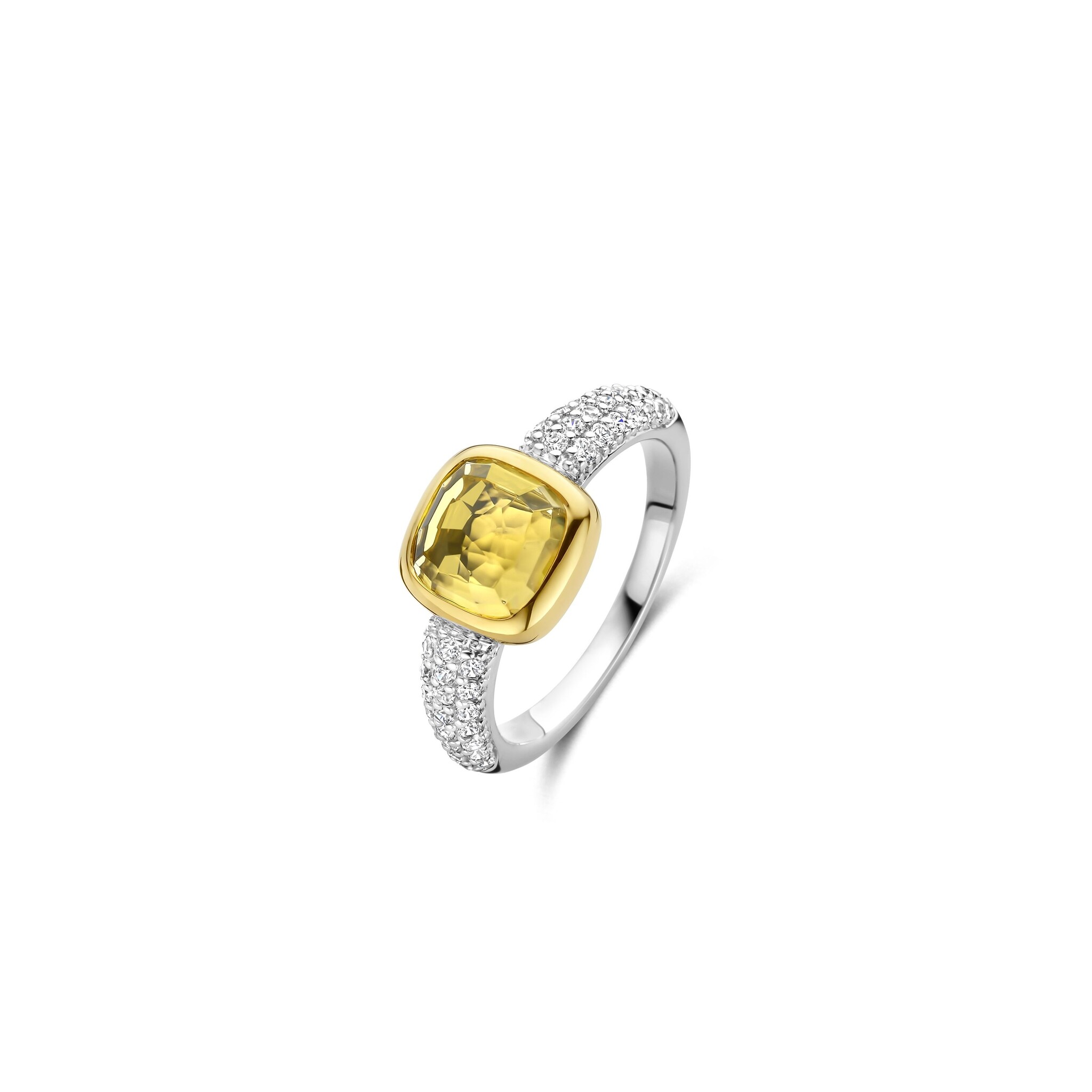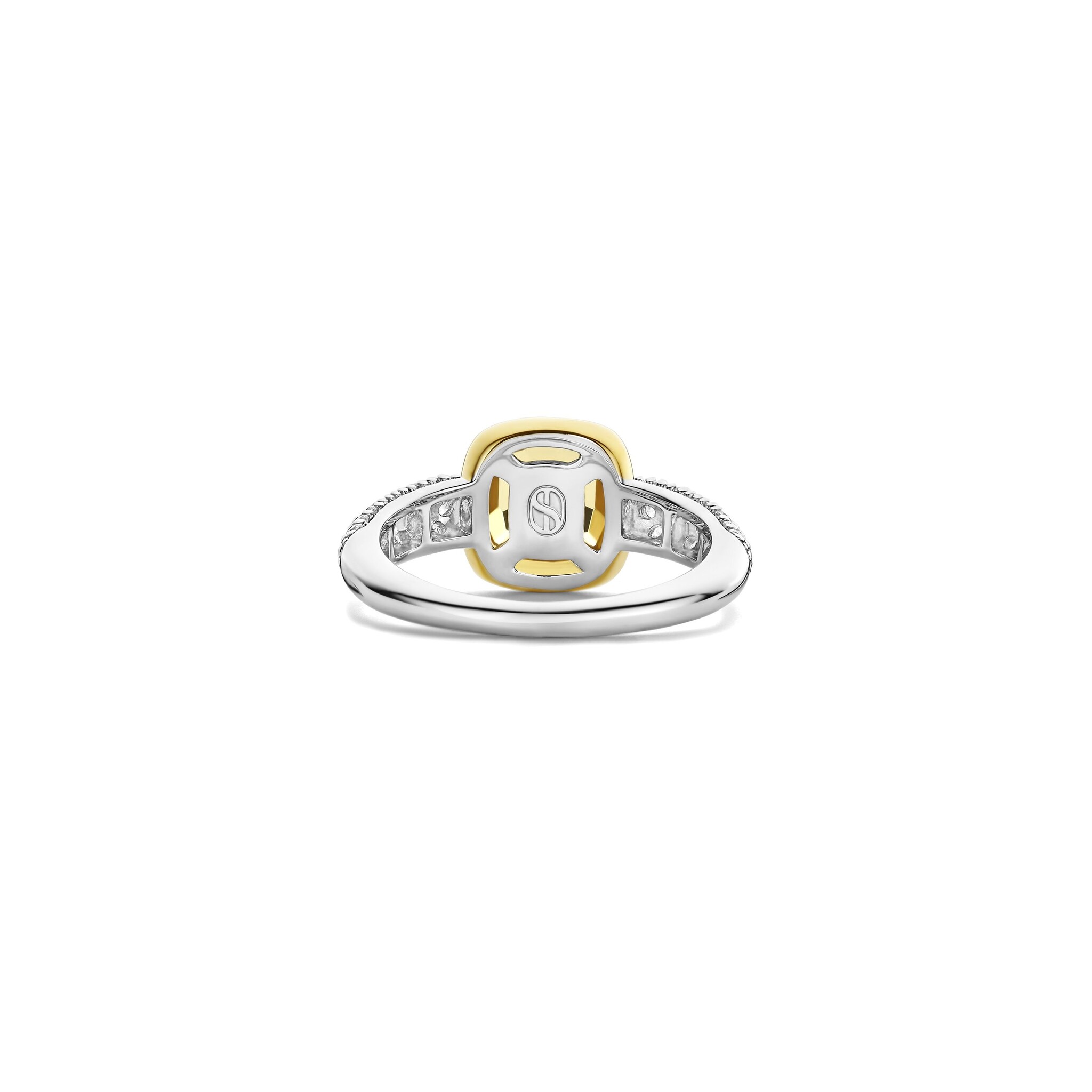 TI SENTO MILANO 12331DY Zilver gerhodineerde ring, gele vierkante zirconia in vergulde kast met pavé zirconia scheen