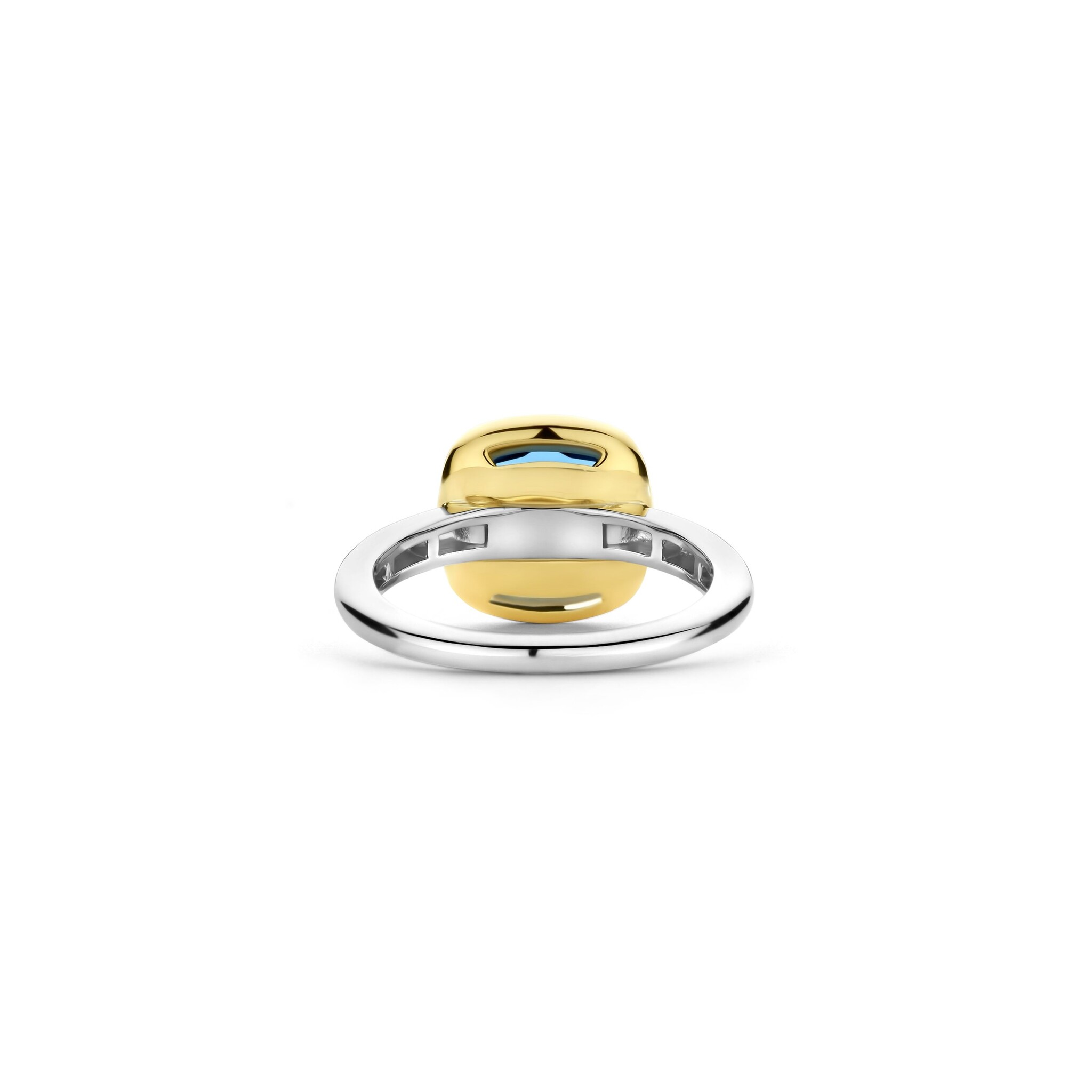 TI SENTO MILANO 12351DB Zilver gerhodineerde ring met donkerblauwe zirconia 10mm in vergulde kast
