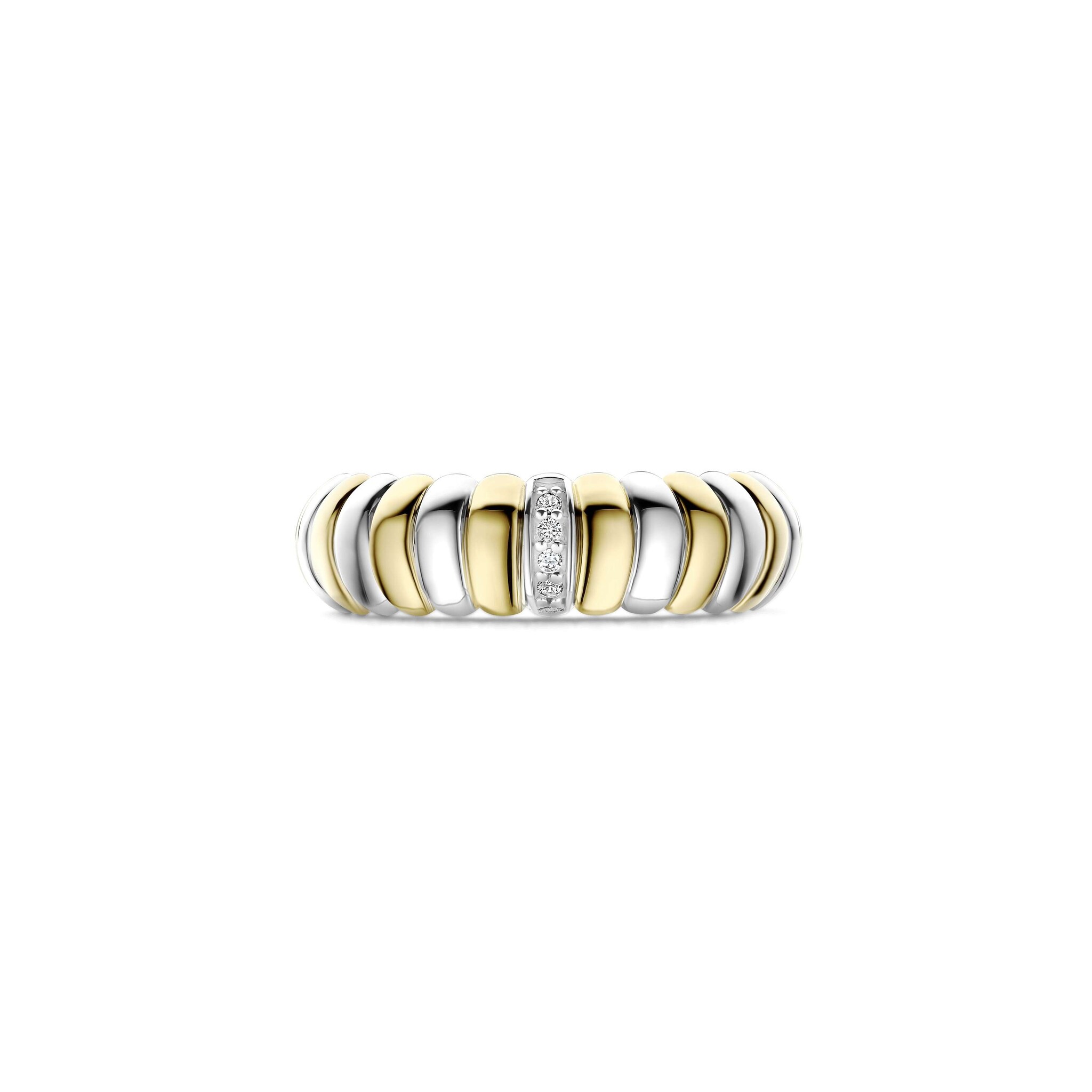 TI SENTO MILANO 12383ZY Zilver gerhodineerde ring, bicolor, croissant, met zirconia's