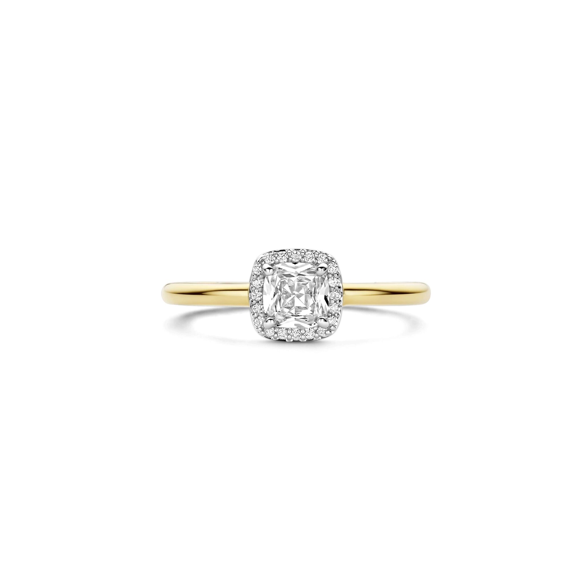 TI SENTO MILANO 12388ZY Zilver gerhodineerde ring, bicolor, solitair vierkant rondom pave gezet met zirconia's