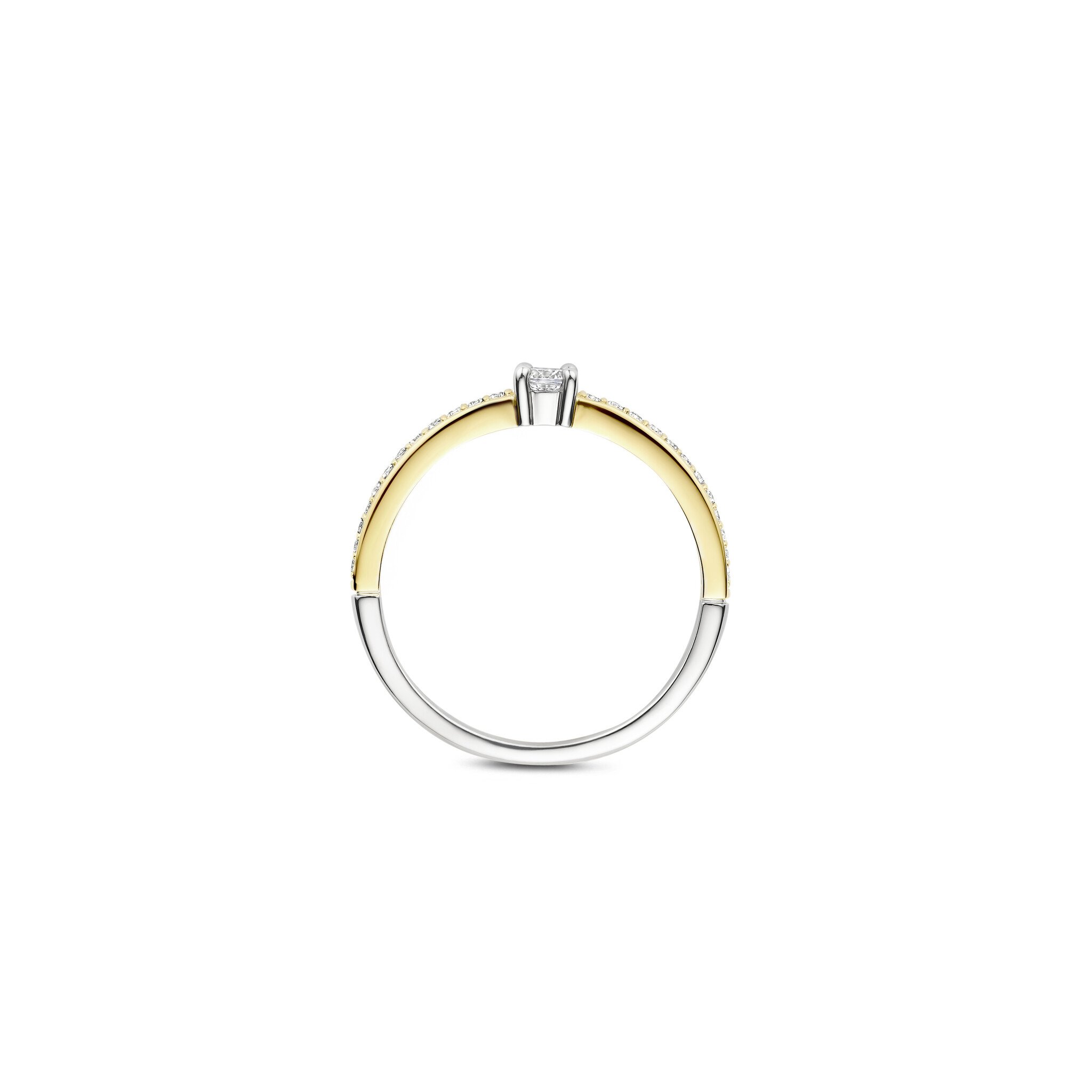 TI SENTO MILANO 12400ZY Zilver gerhodineerde ring met verguld, solitair met enkel bandje pavé zirconia's