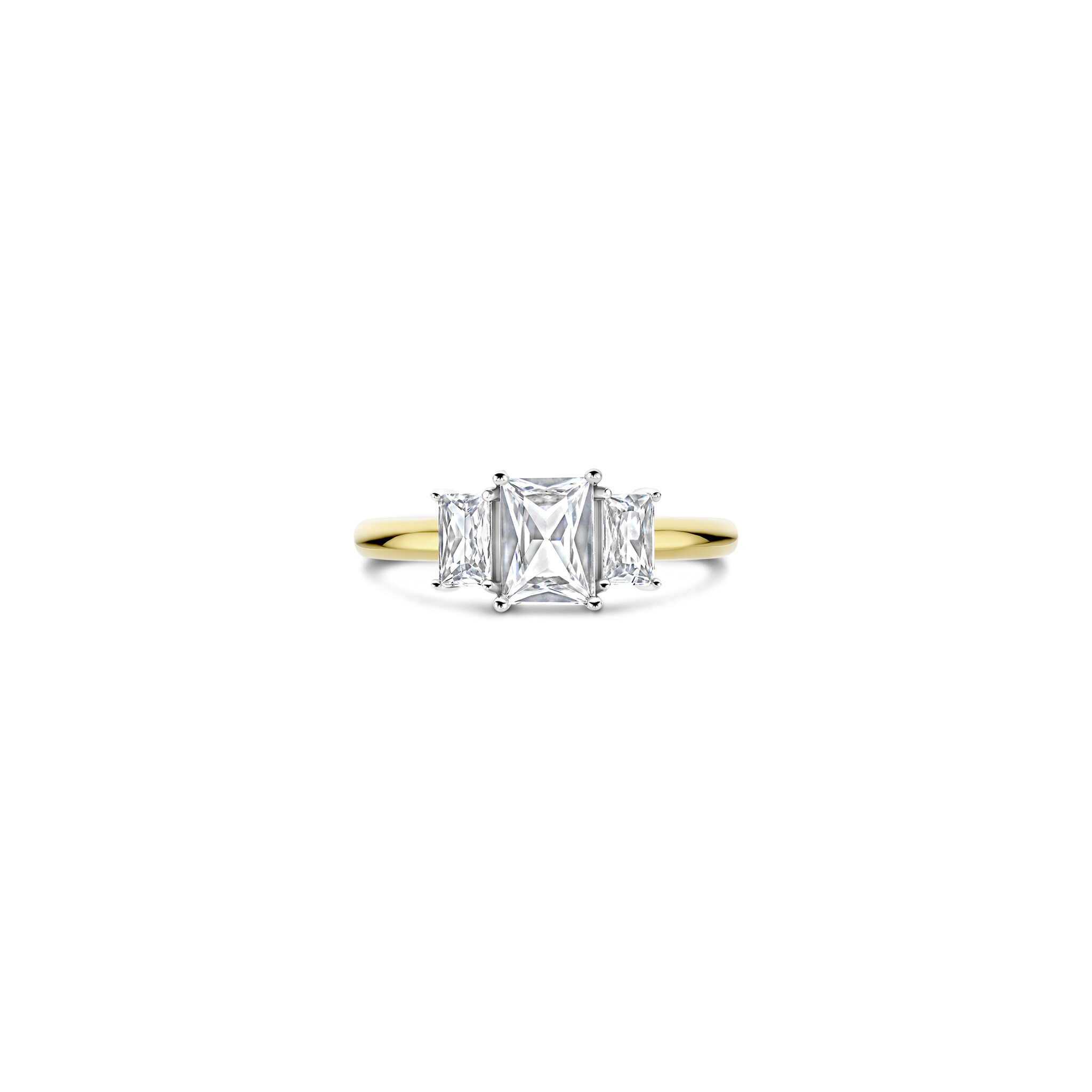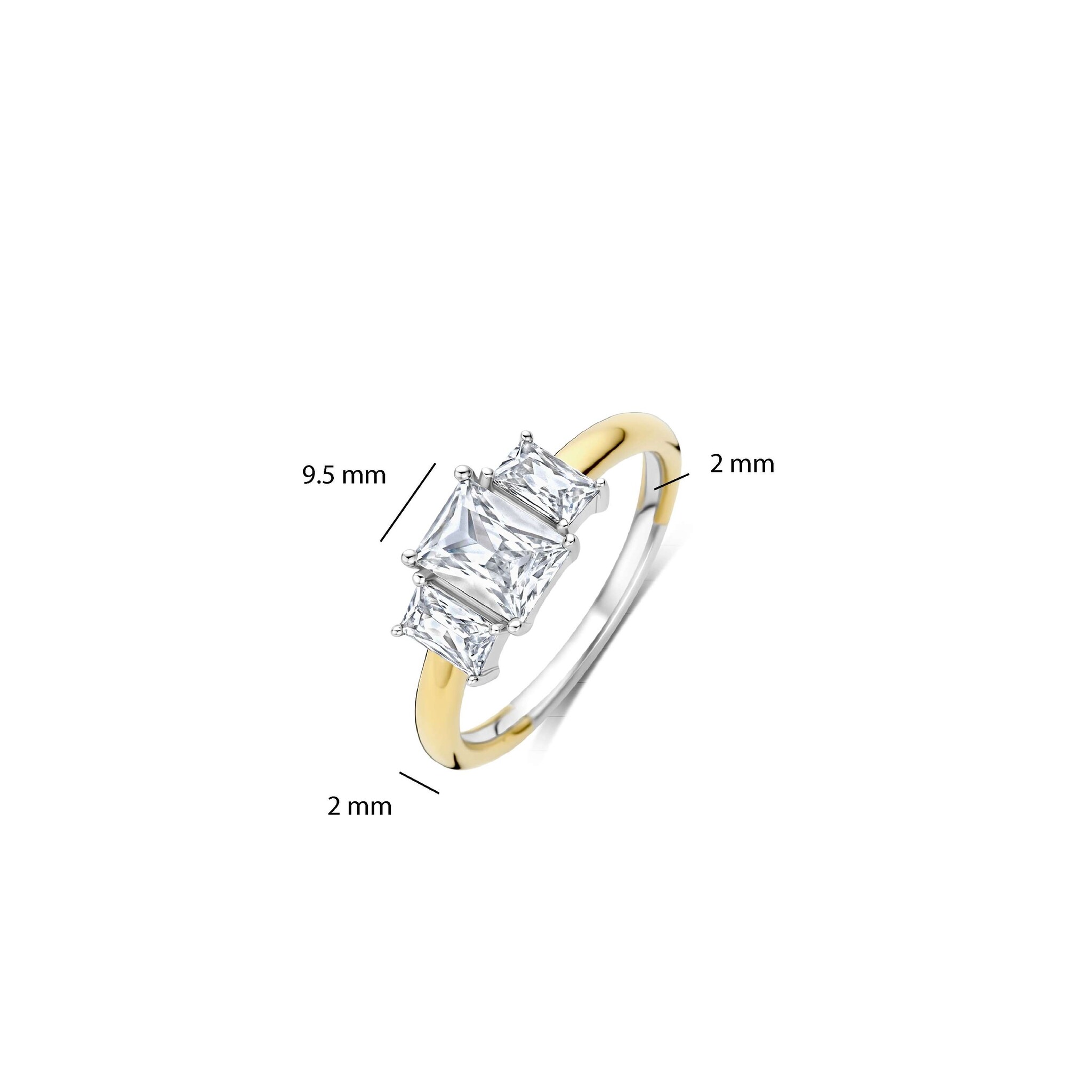 TI SENTO MILANO 12419ZY Zilver gerhodineerde ring met verguld, rechthoekige zirkonia's groot en klein