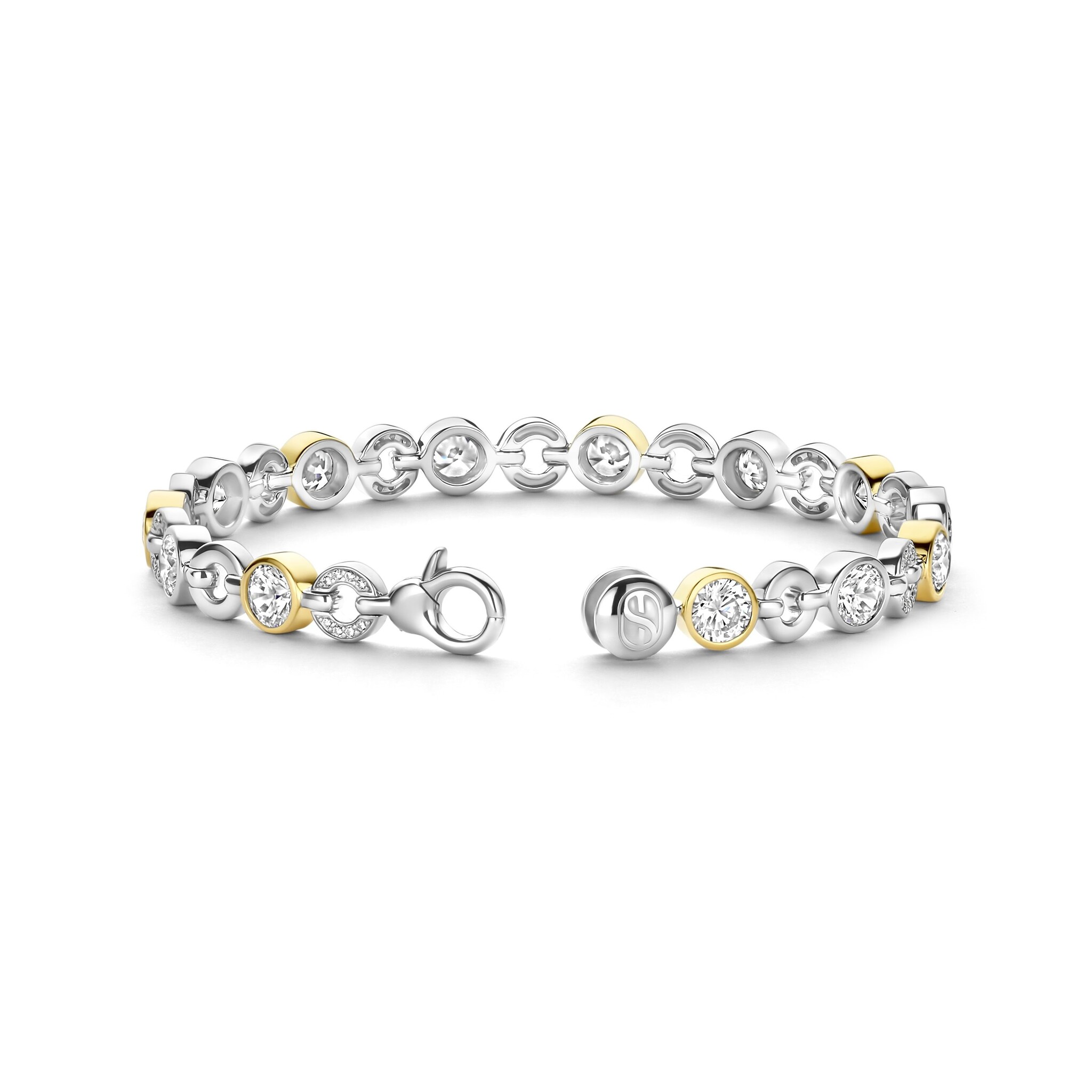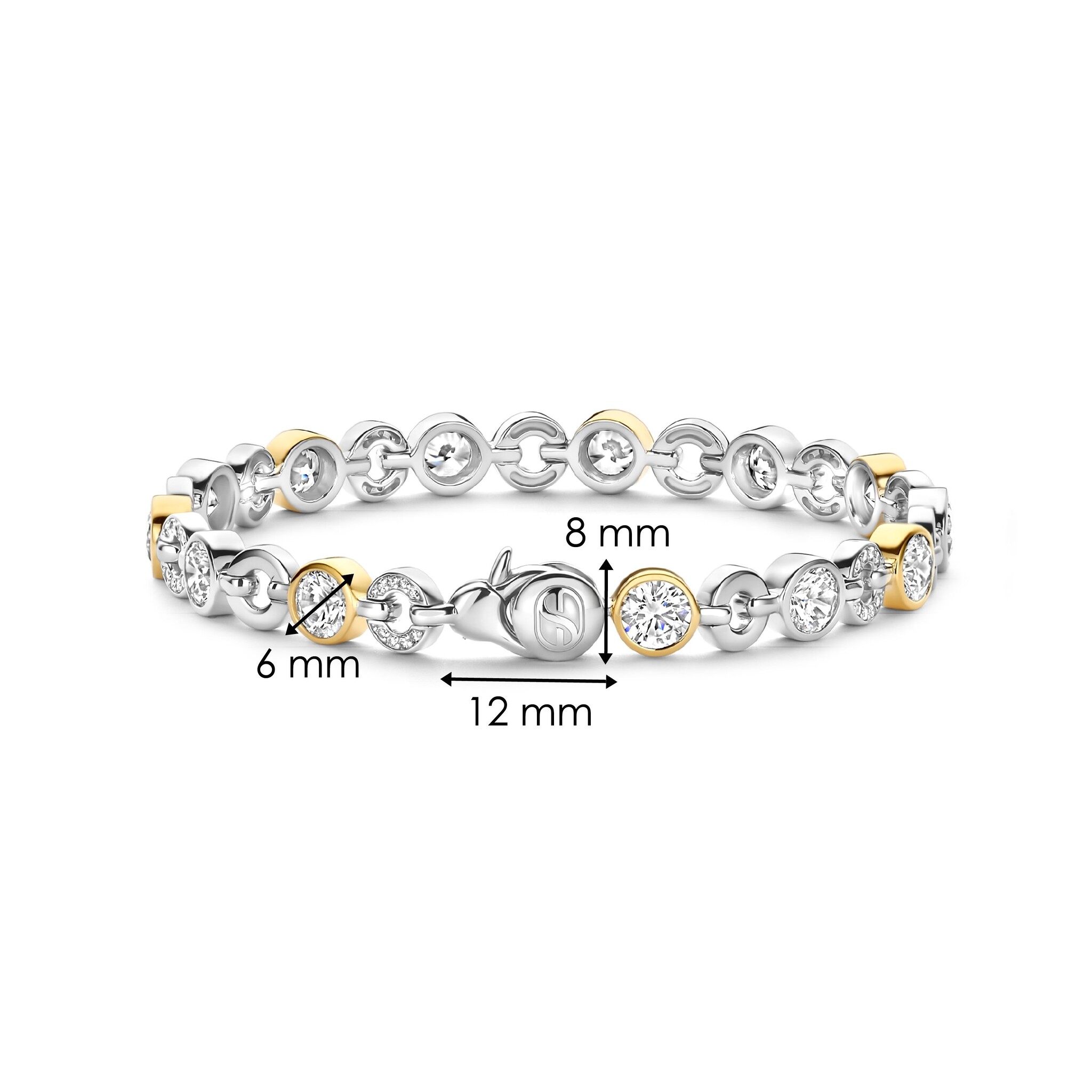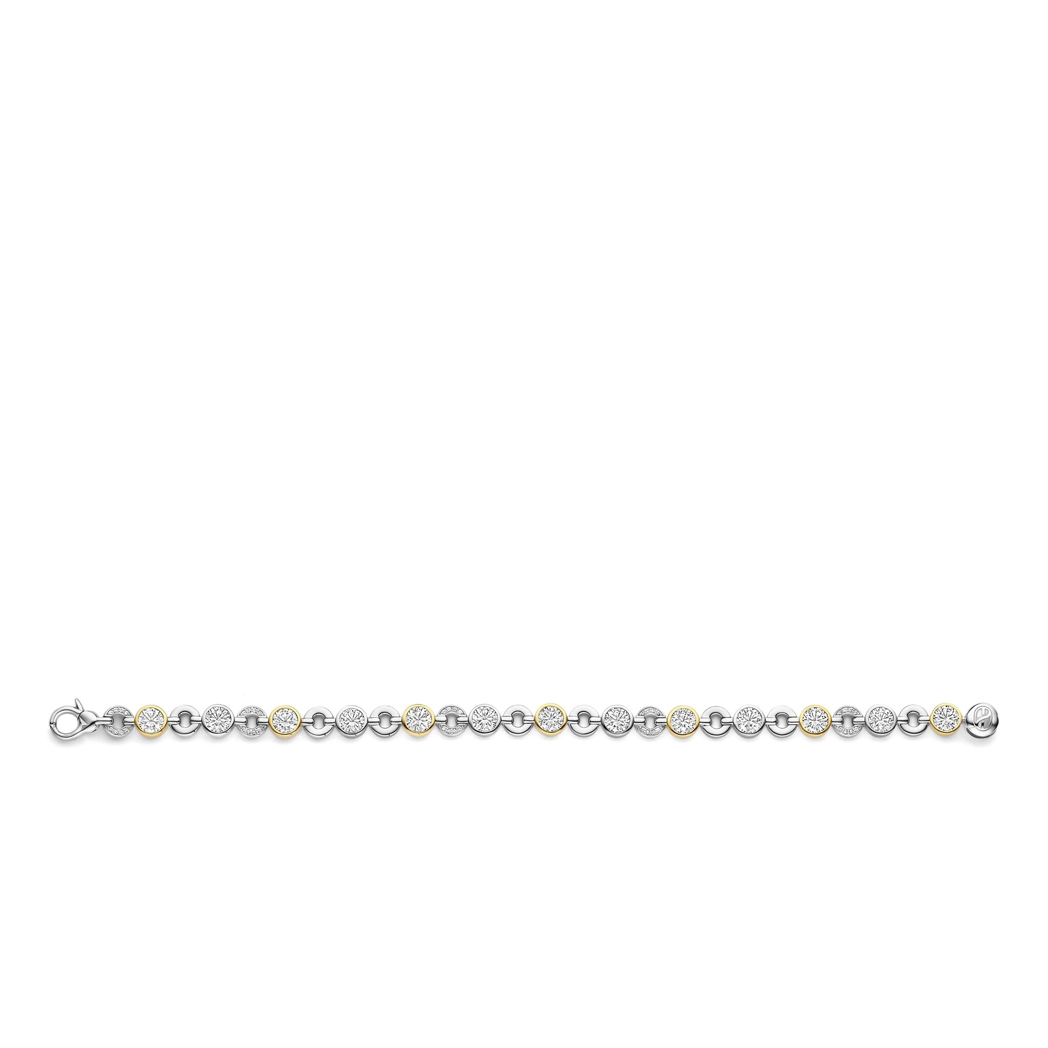 TI SENTO MILANO 23054ZY Zilver gerhodineerde armband, ronde, open en dichte schakeltjes, verguld en met zirconia