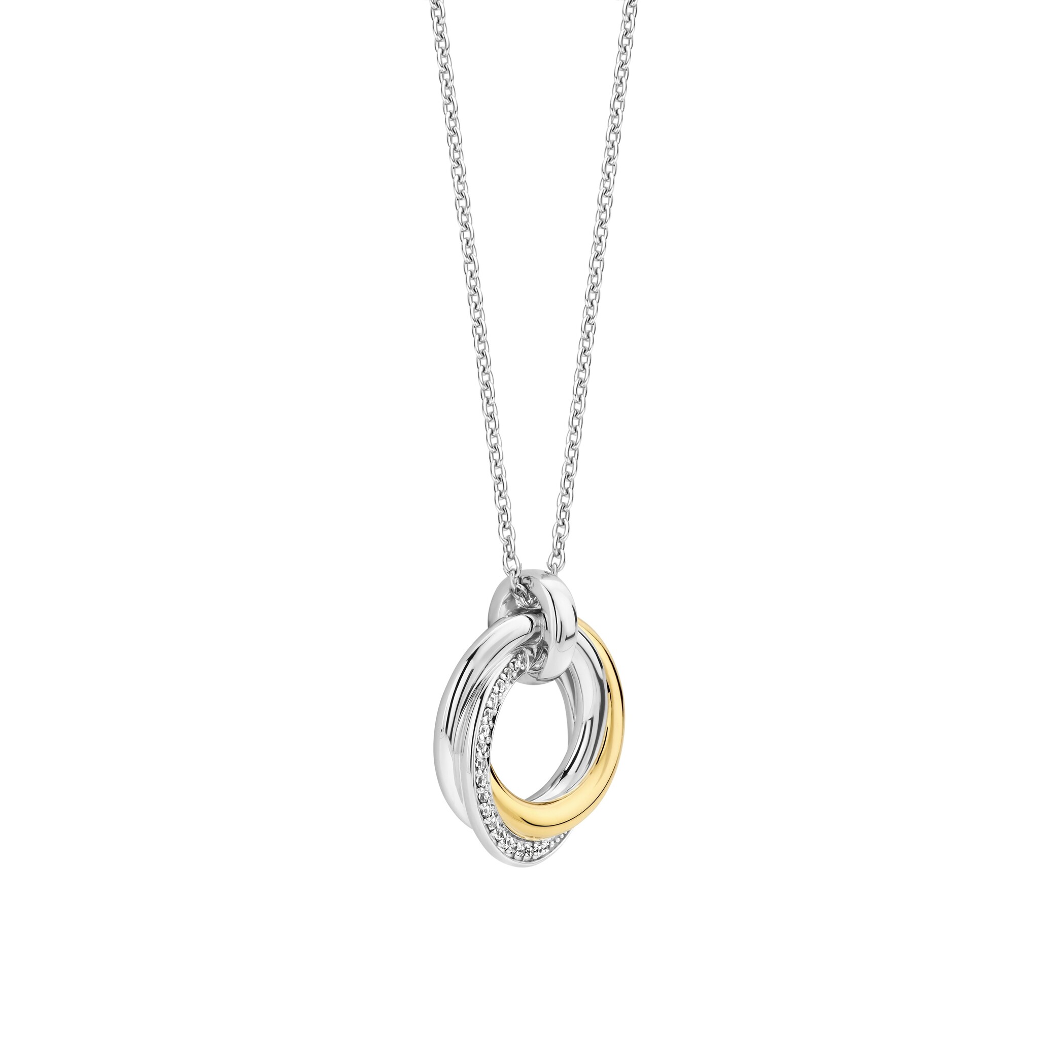 TI SENTO MILANO 34055ZY/42 Zilver gerhodineerd collier met hanger, 3 circels in elkaar, vast, verguld/zirconia's/glad