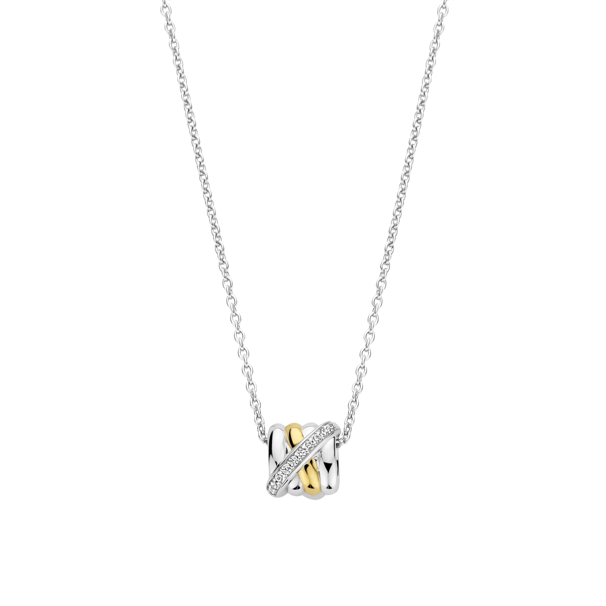 TI SENTO MILANO 34059ZY Zilver gerhodineerd collier met vaste hanger, verbonden ringetjes met verguld en schuine lijn zirconi