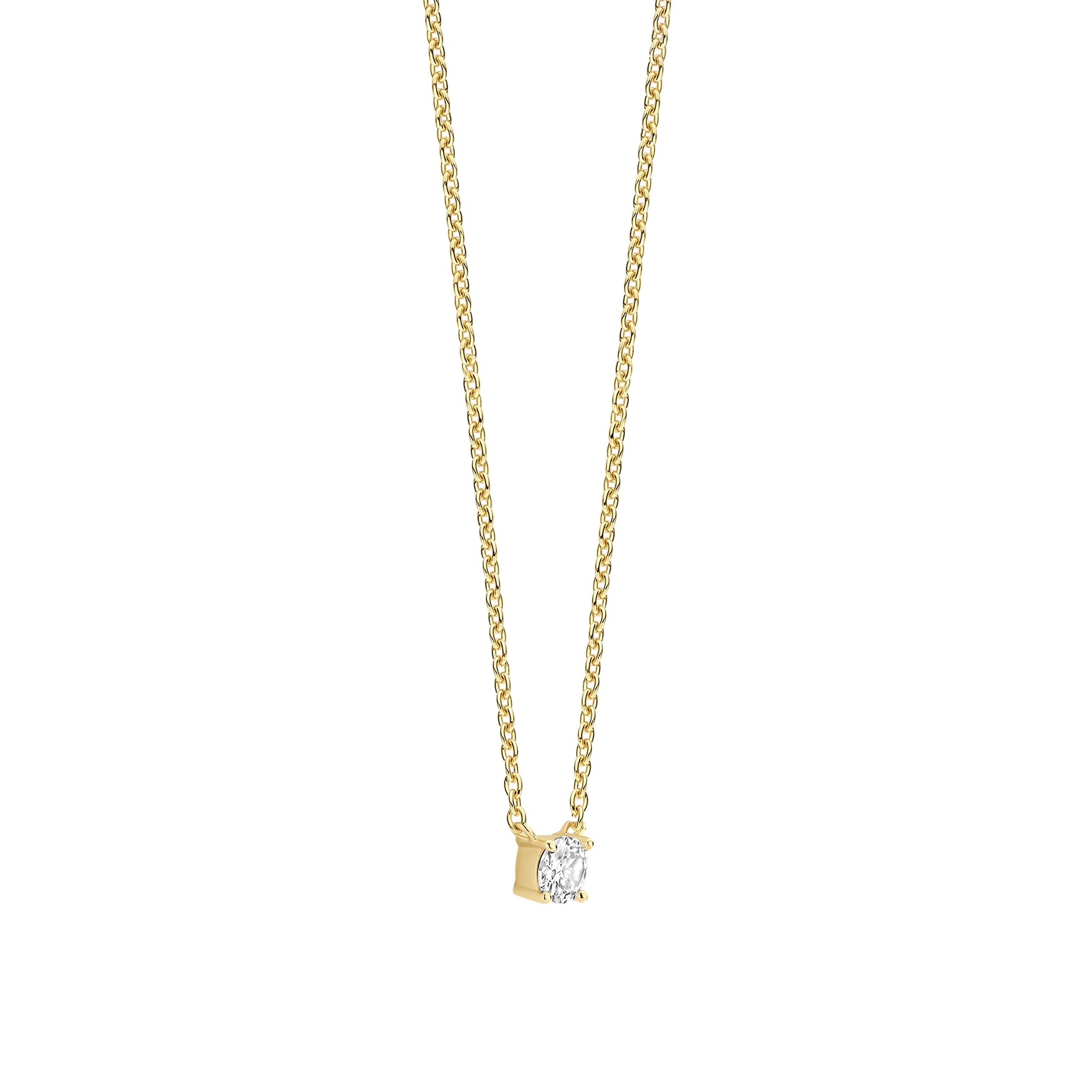 TI SENTO MILANO 34087ZY/42 Zilver verguld collier met soltairhanger zirconia 5mm, 42cm