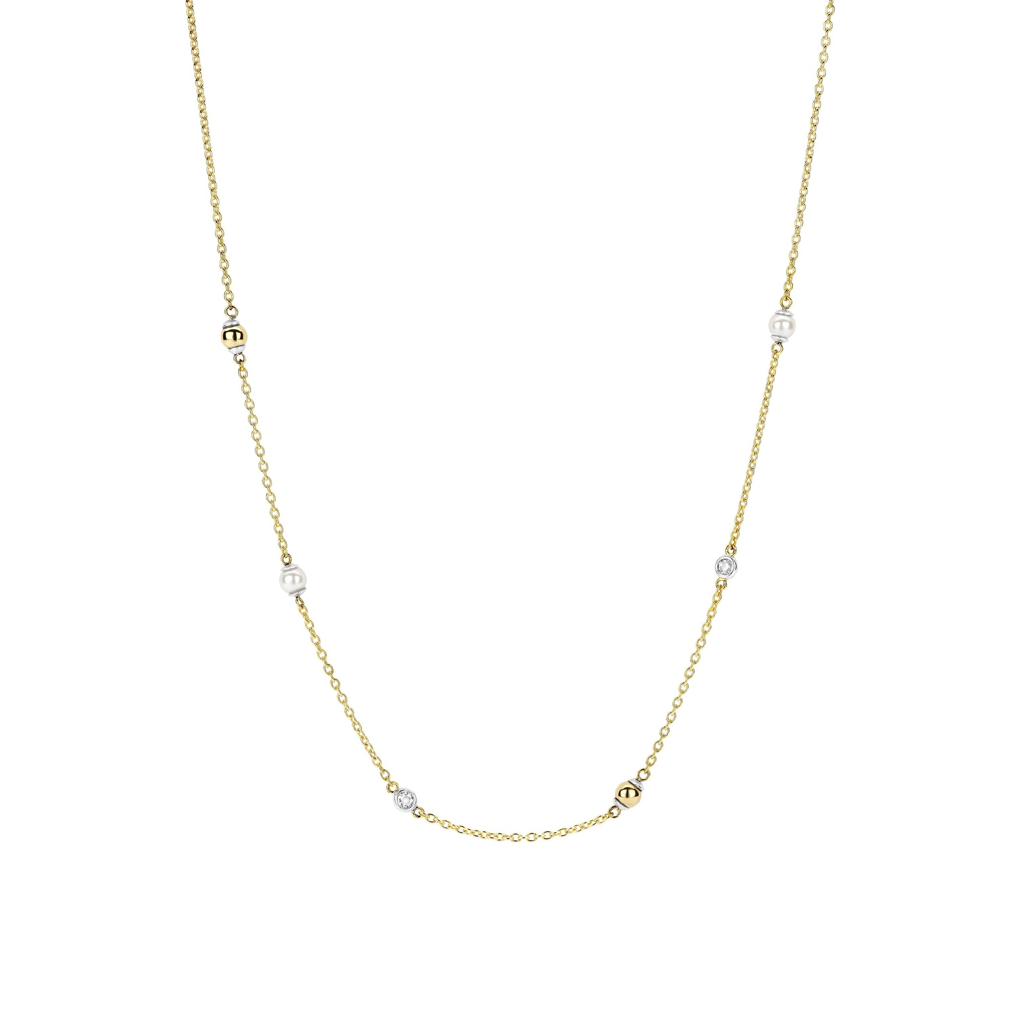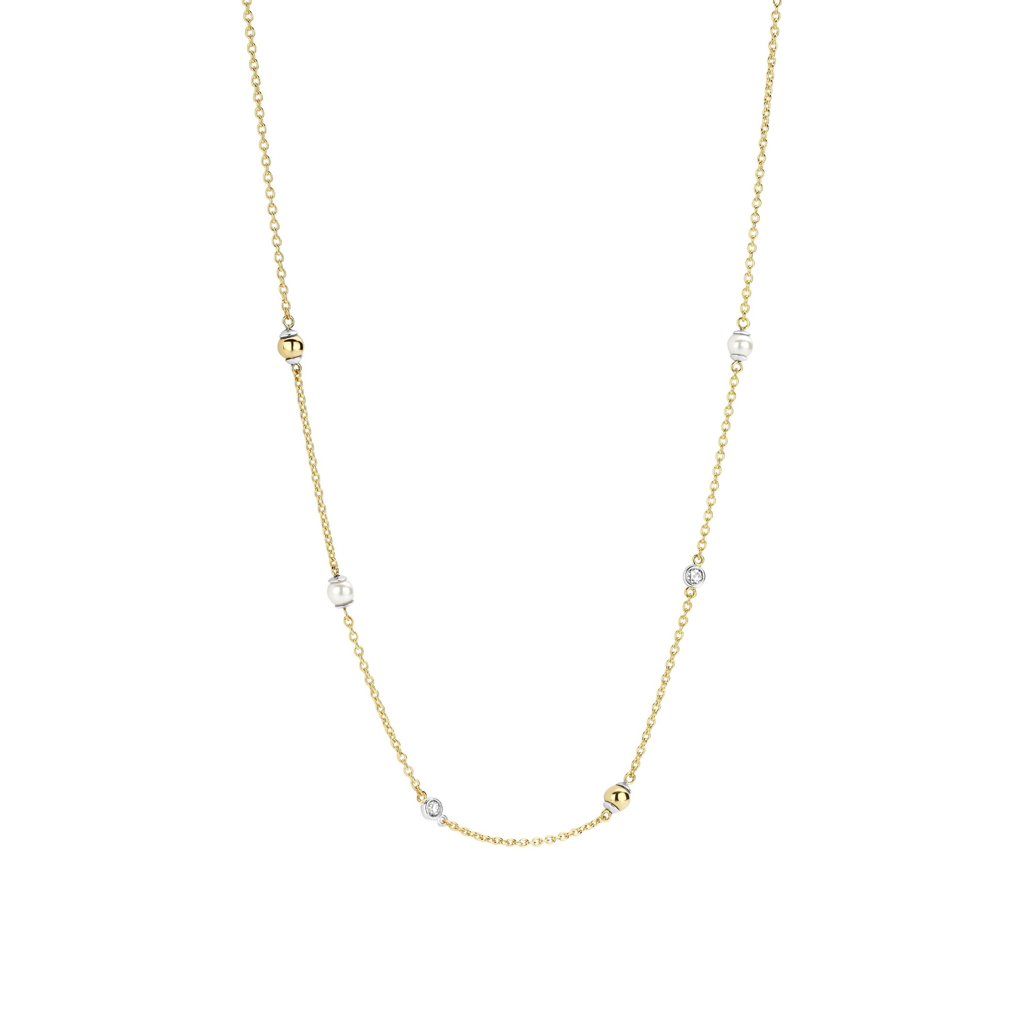TI SENTO MILANO 34097ZY Zilver verguld ankercollier met bolletje, parel en zirconia's. 42cm
