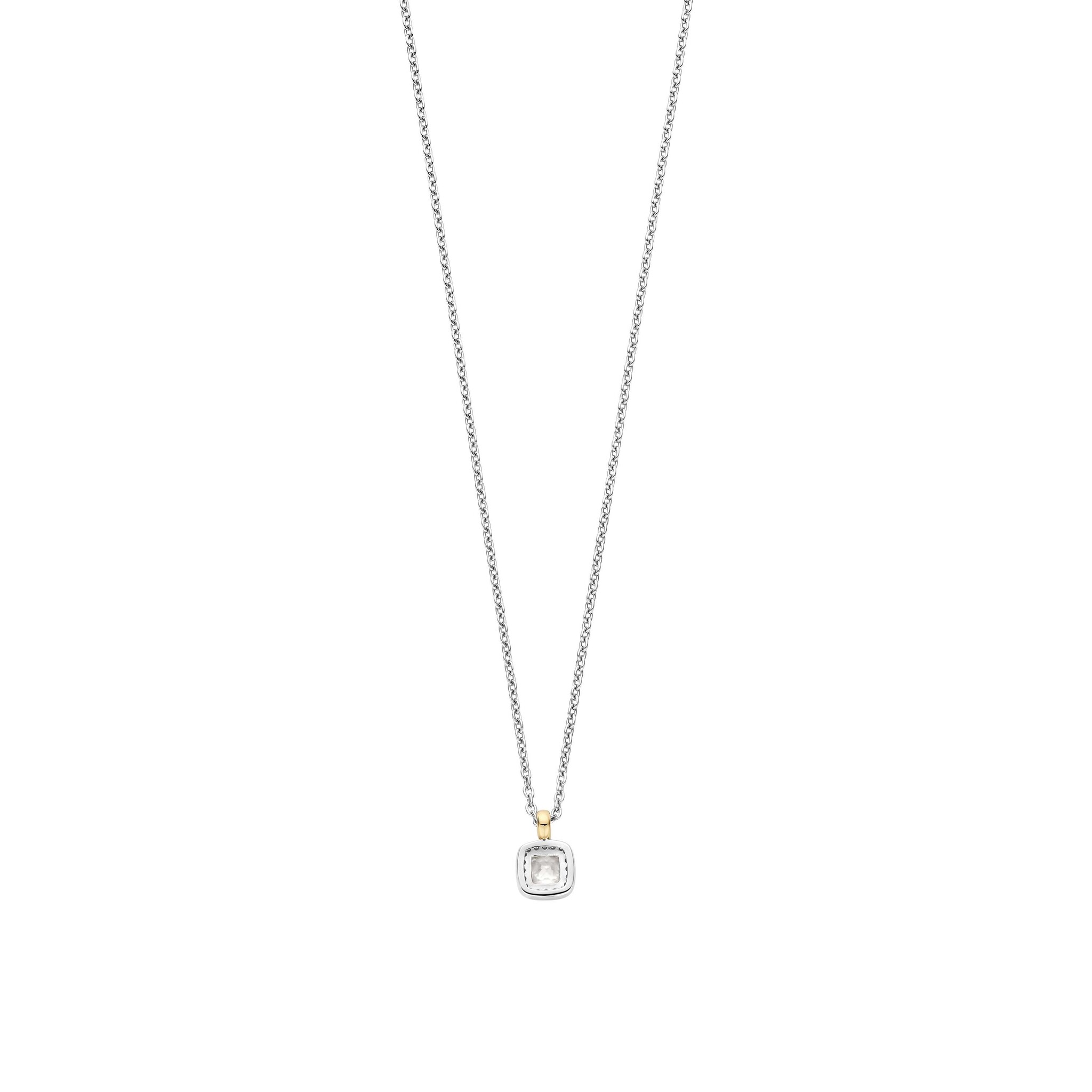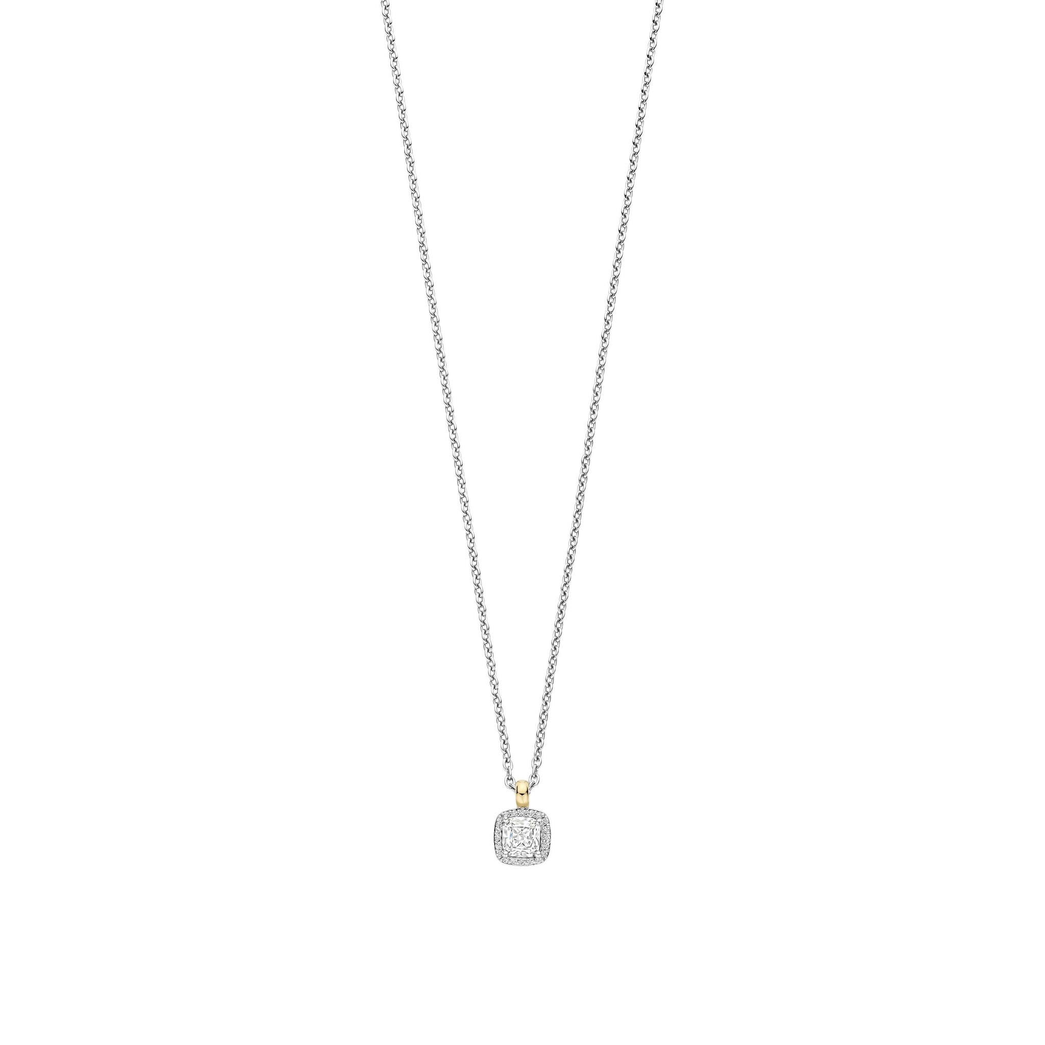 TI SENTO MILANO 34103ZY/42 Zilver gerhodineerd collier met hangertje, vierkante zirconia 5 mm, rand pavé zirconia's en verguld oogje