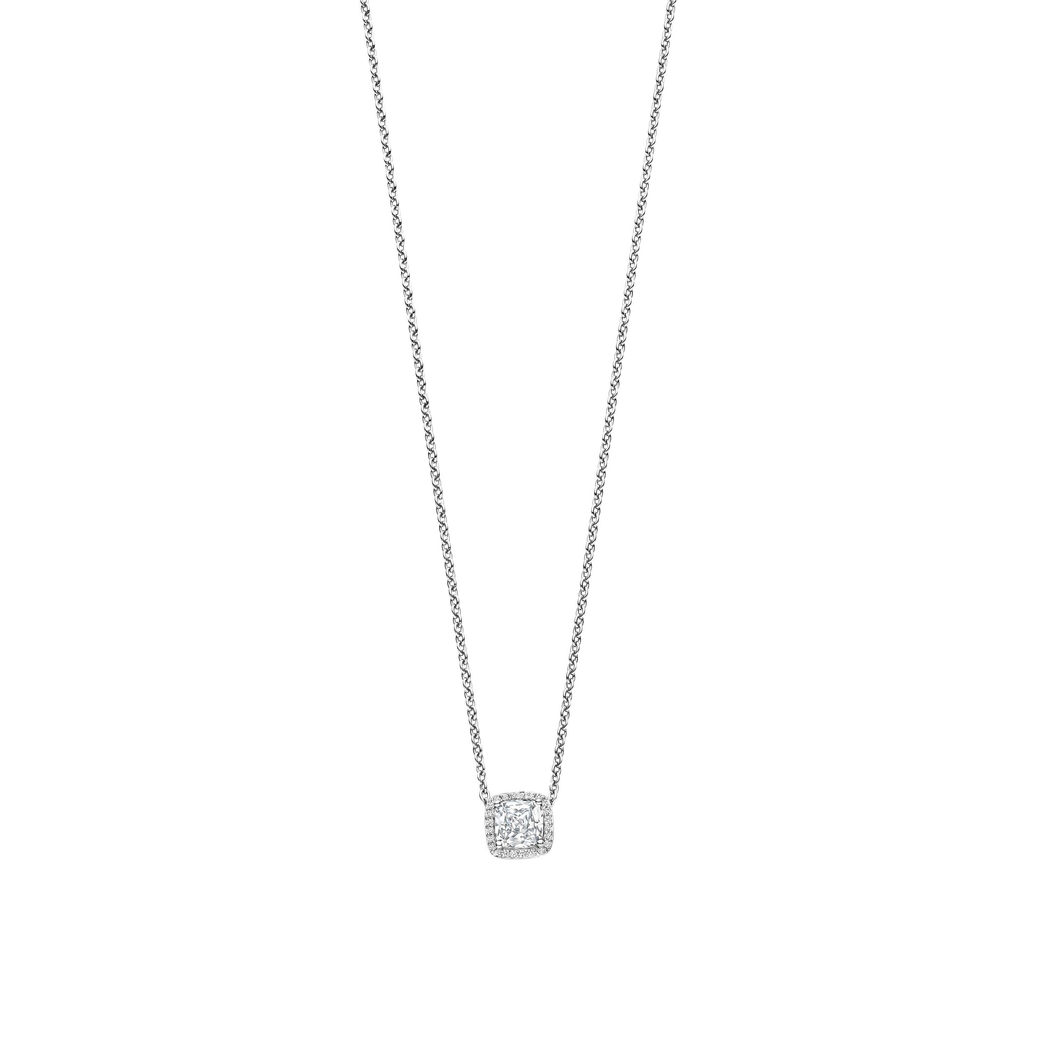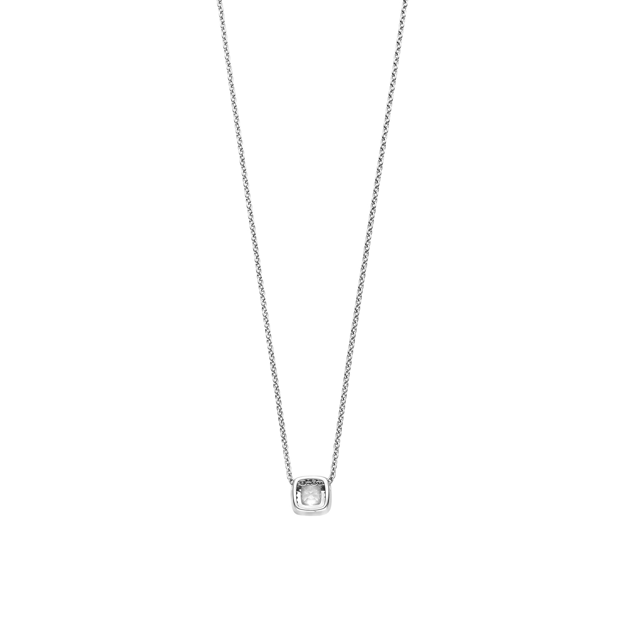 TI SENTO MILANO 34104ZI Zilver gerhodineerd collier, hanger vierkante zirconia, rondom zirconia's